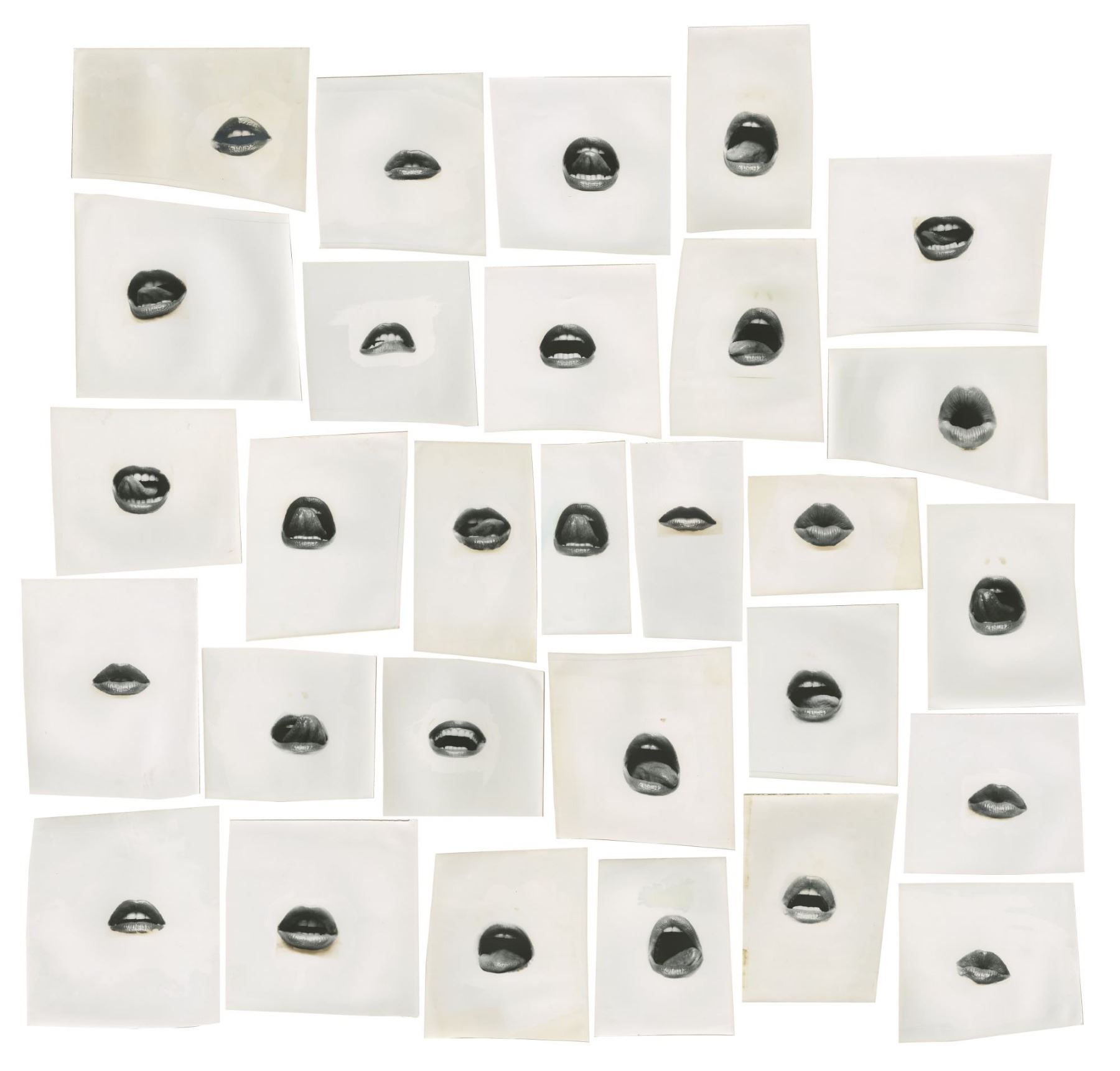 (20th Century Fox, 1975) An incredible set of printed photos that were used in the creation of the iconic film poster for "The Rocky Horror Picture Show". The poster, which features red lips and the phrase "A Different Set of Jaws", has become a familiar visual from this cult-classic musical horror comedy film. This set includes (29) printed images of different mouth shapes that were used in the process of designing the film poster. The mouth images measure approximately 1.75"x2" each on various sizes of trimmed paper. The set is in overall very good condition with some wear and spots of discoloration from use.