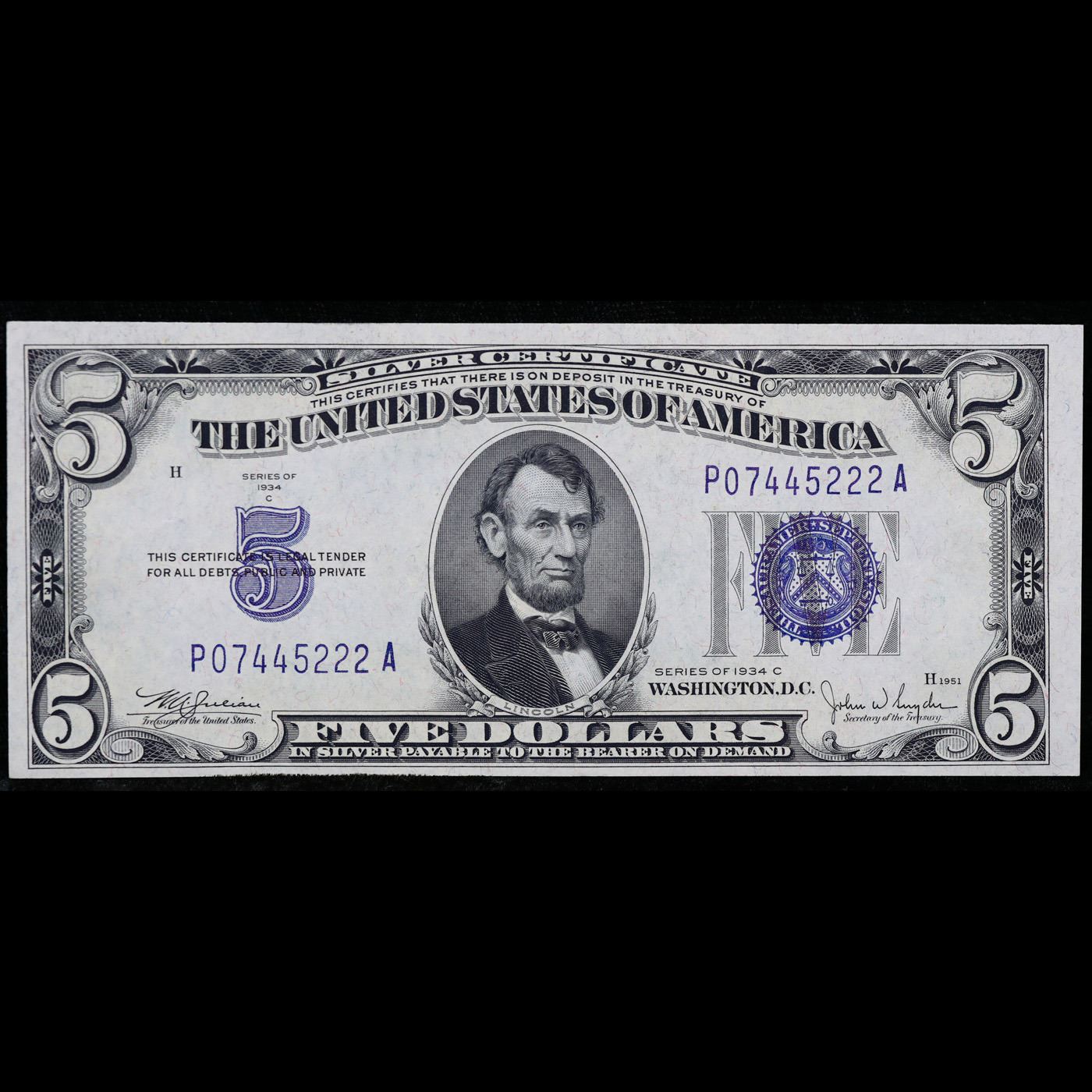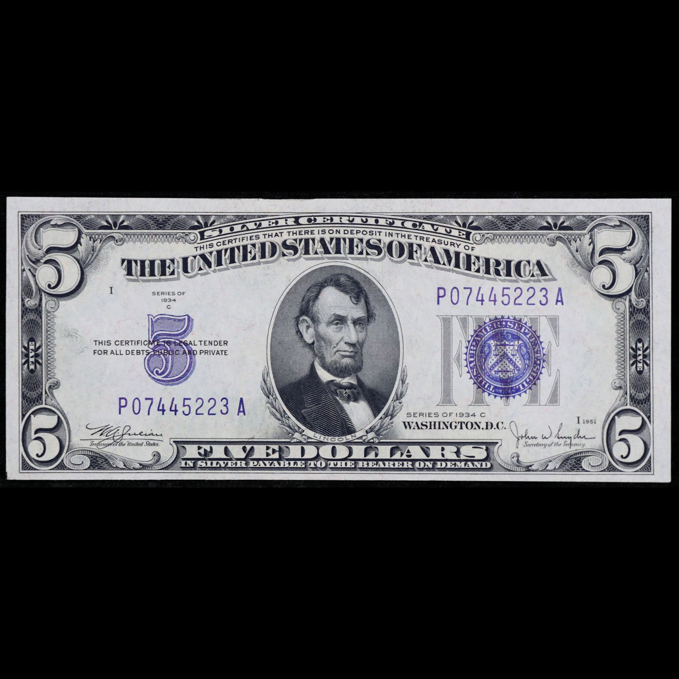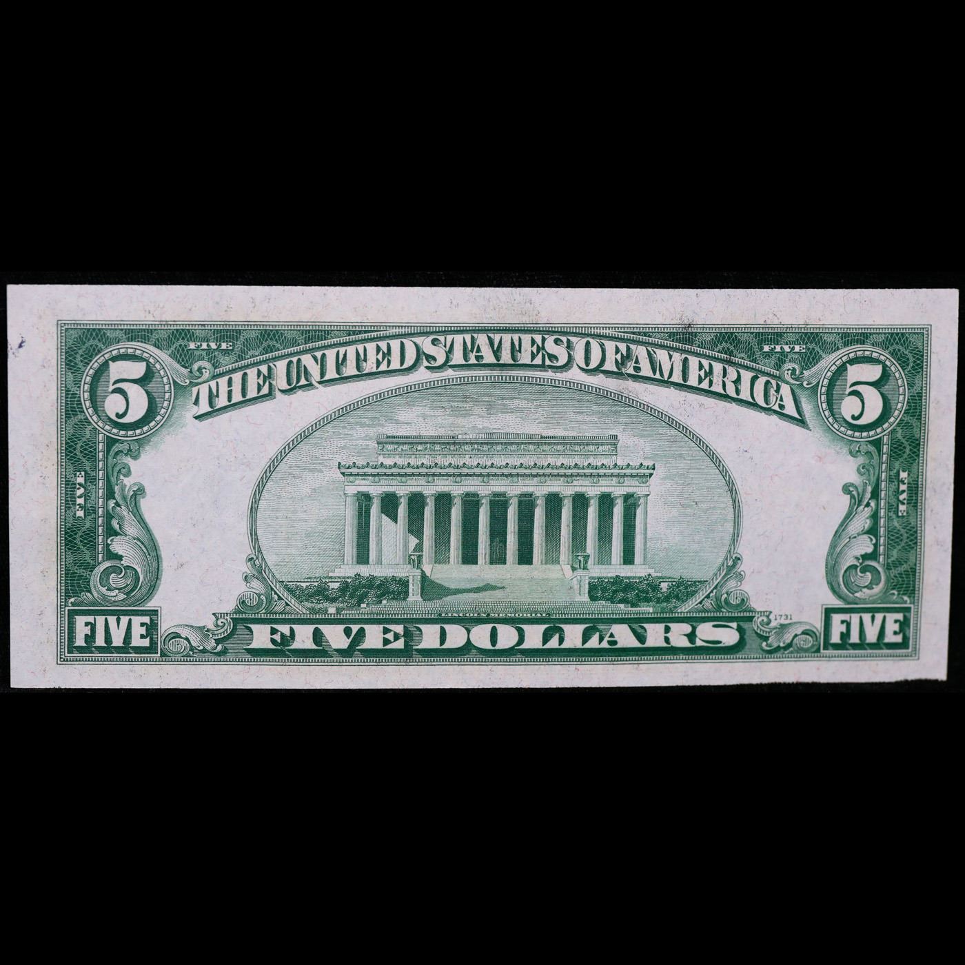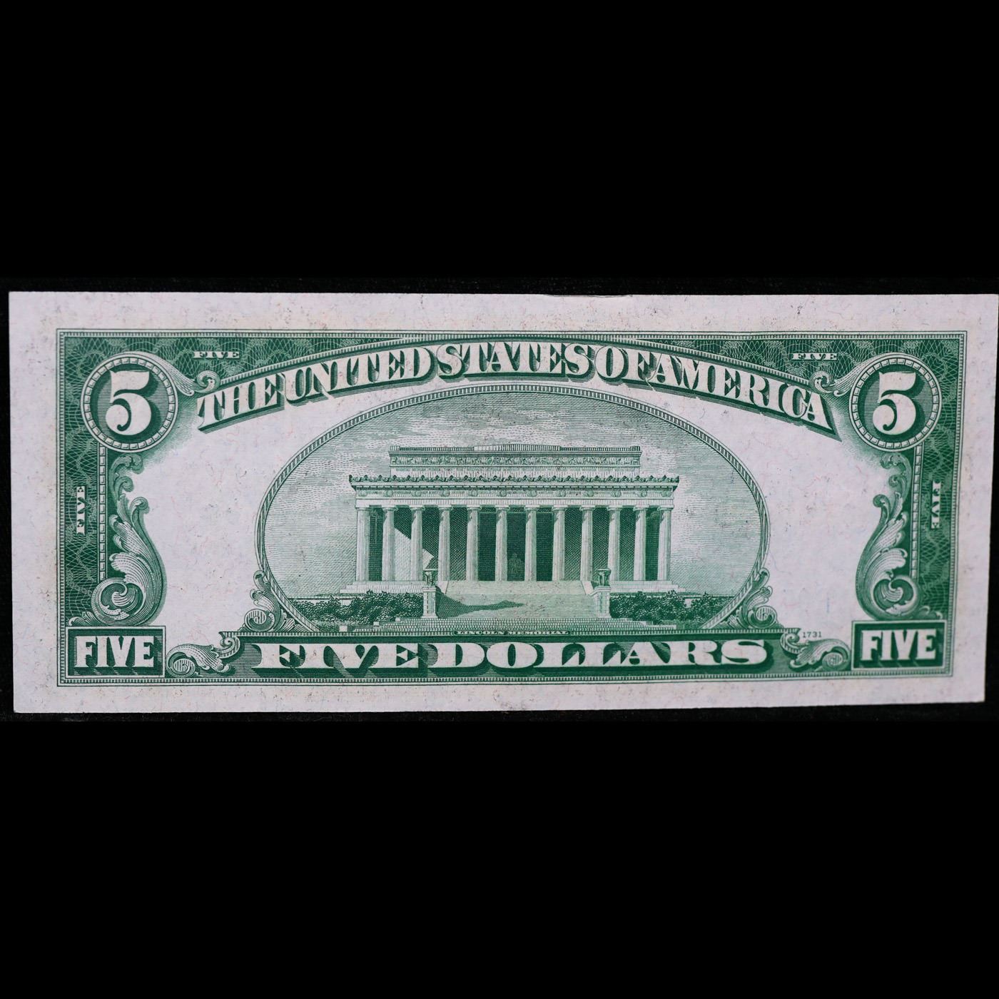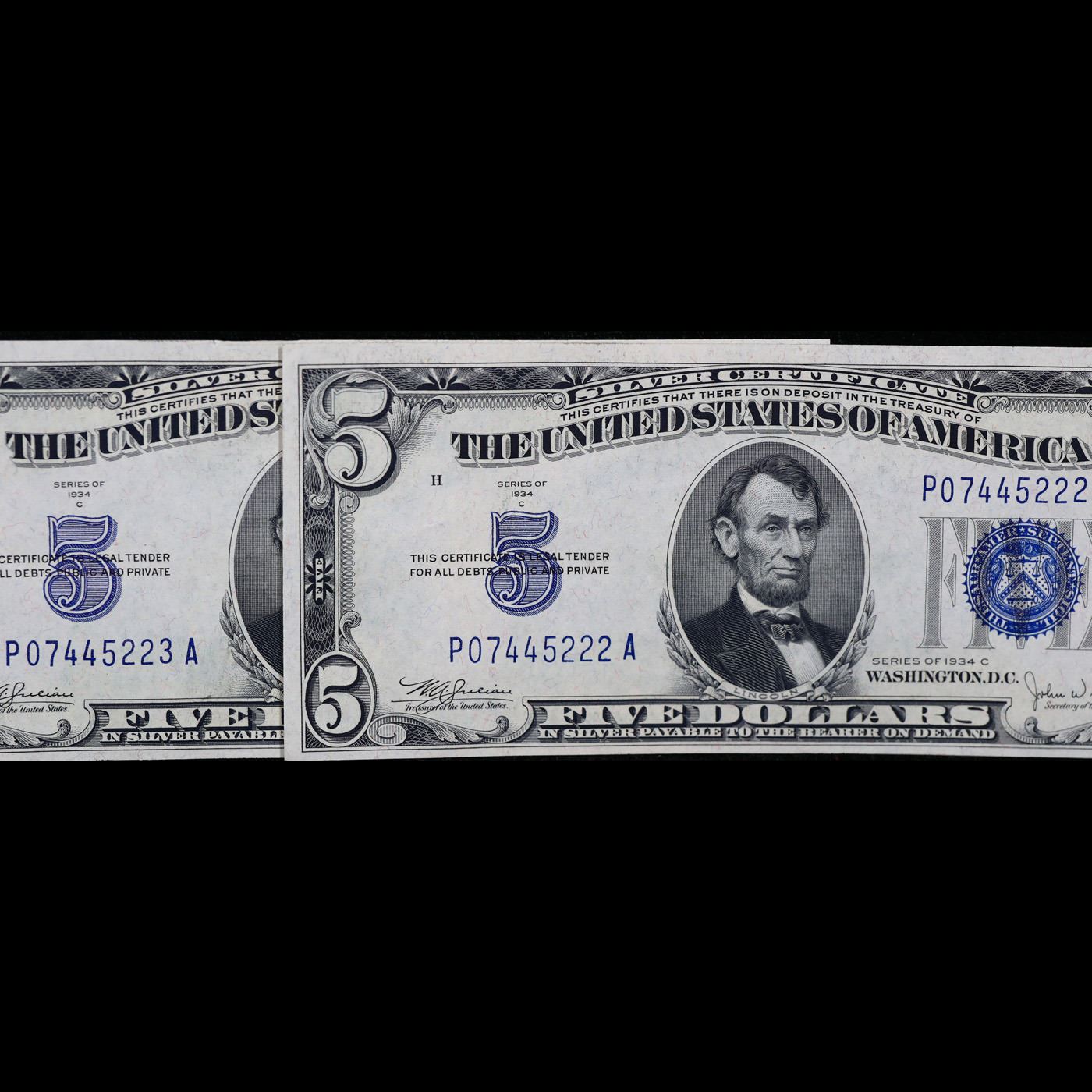 Set of 2x Consecutive 1934C $5 Blue Seal Silver Certificates, All CU Grade Grades Choice CU.