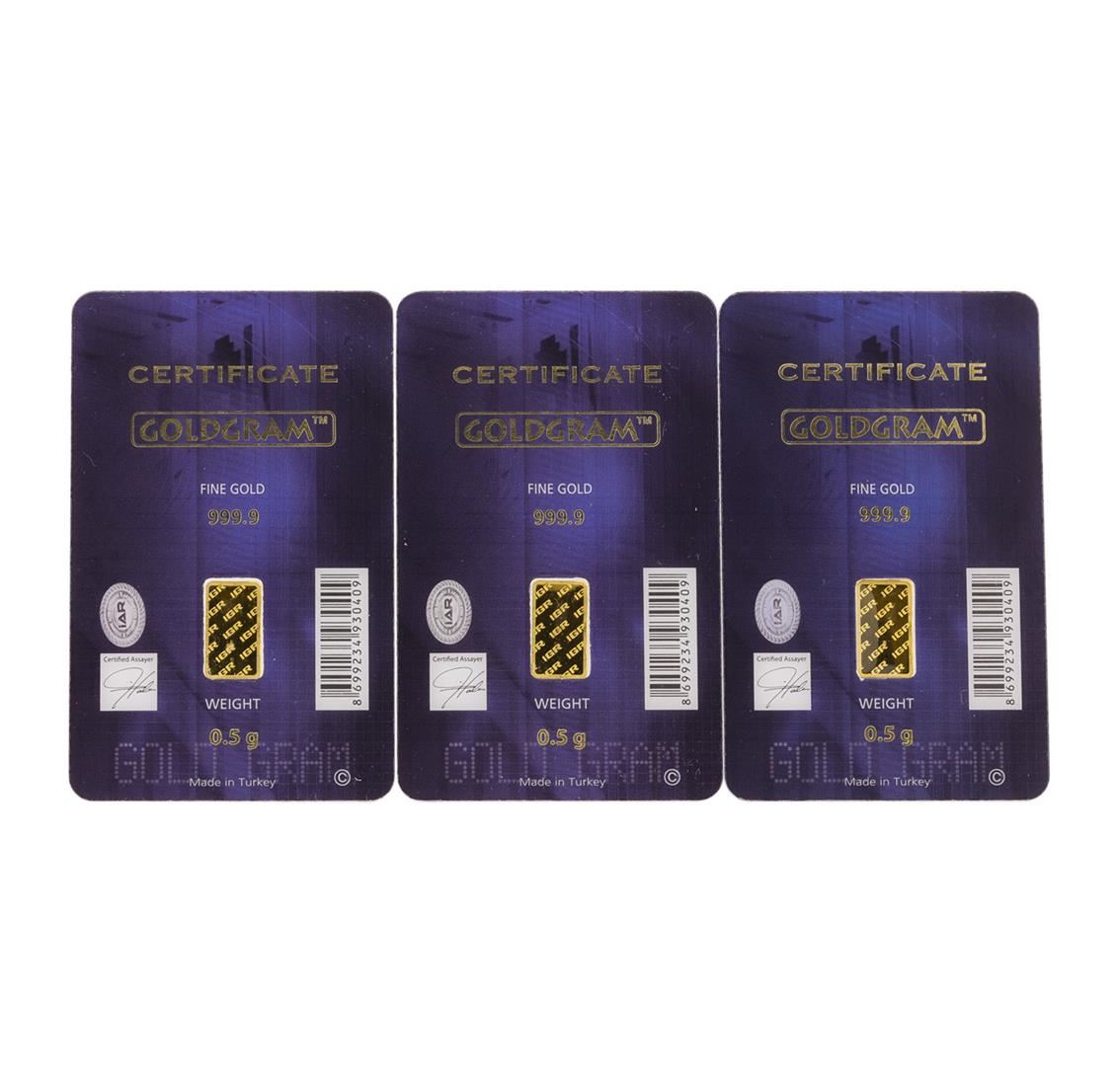 One Set of (3) 0.5 Gram Istanbul Gold Refinery Cards.