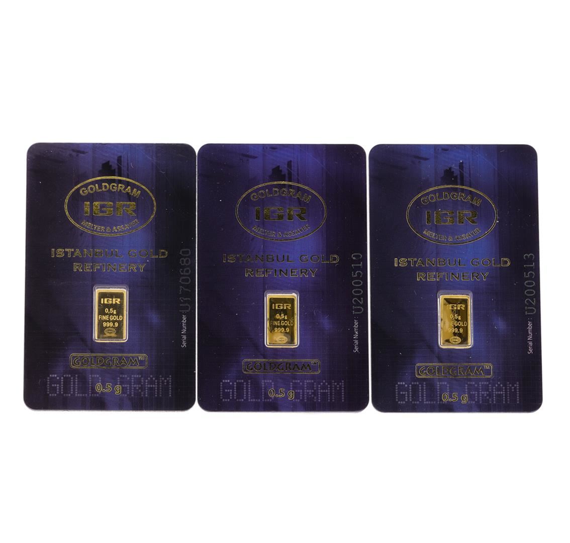 One Set of (3) 0.5 Gram Istanbul Gold Refinery Cards.