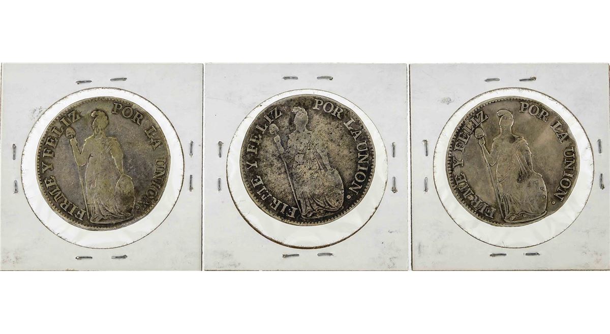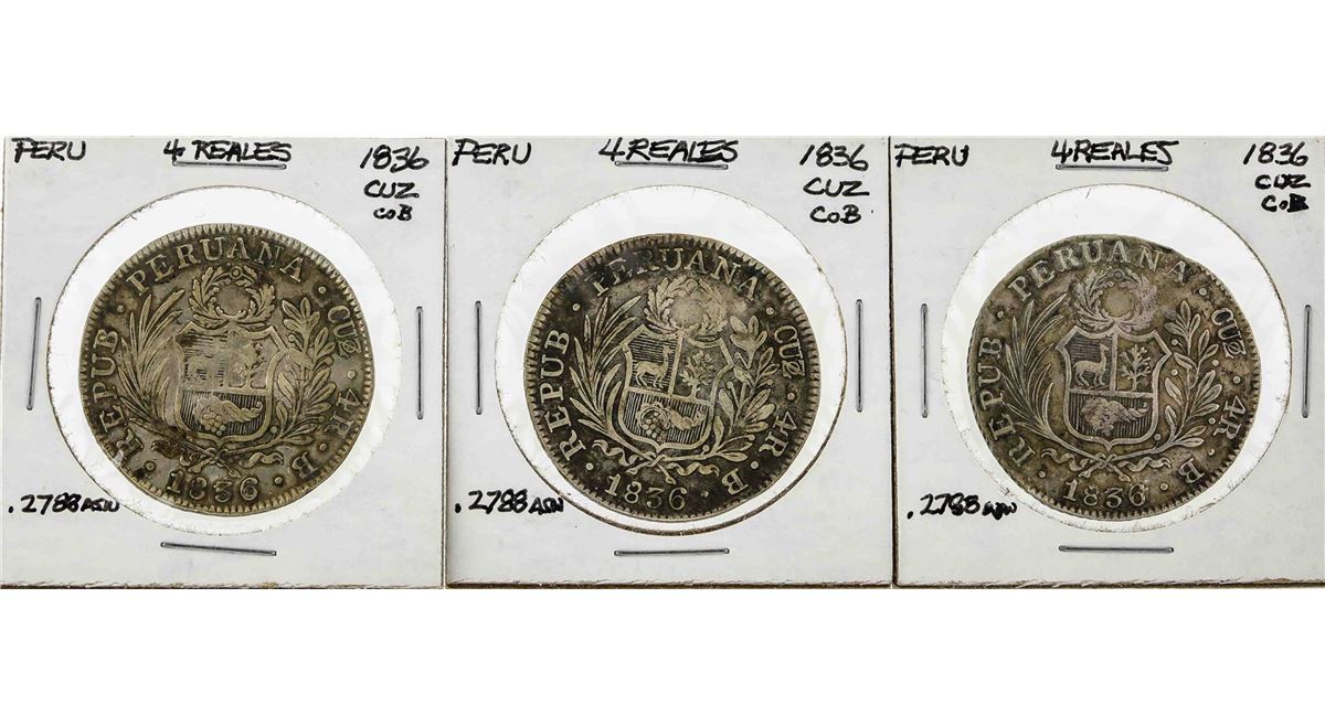 One Set of (3) 1836 CUZ Peru 4 Reales Coins.