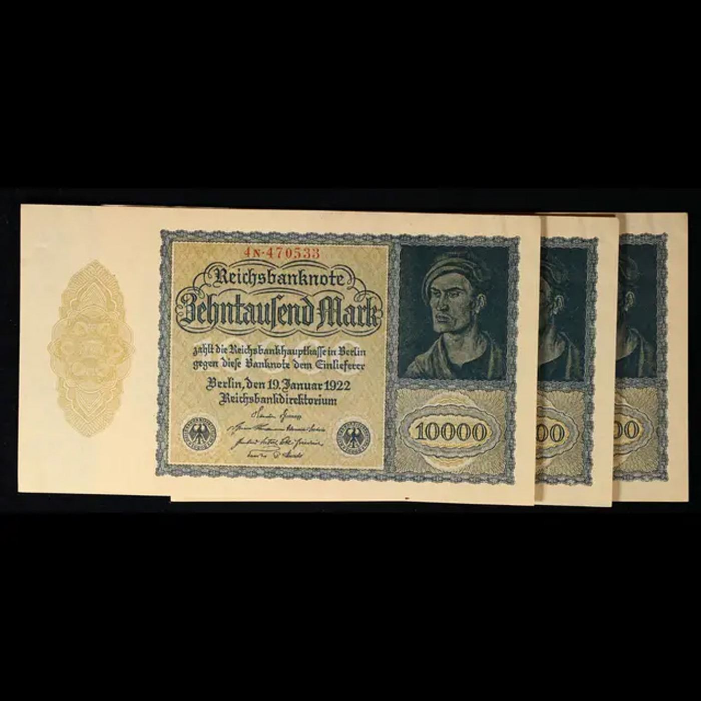 Set of 3 1922 Weimar Germany 10,000 Mark Vampire Notes P# 71 Grades CU
