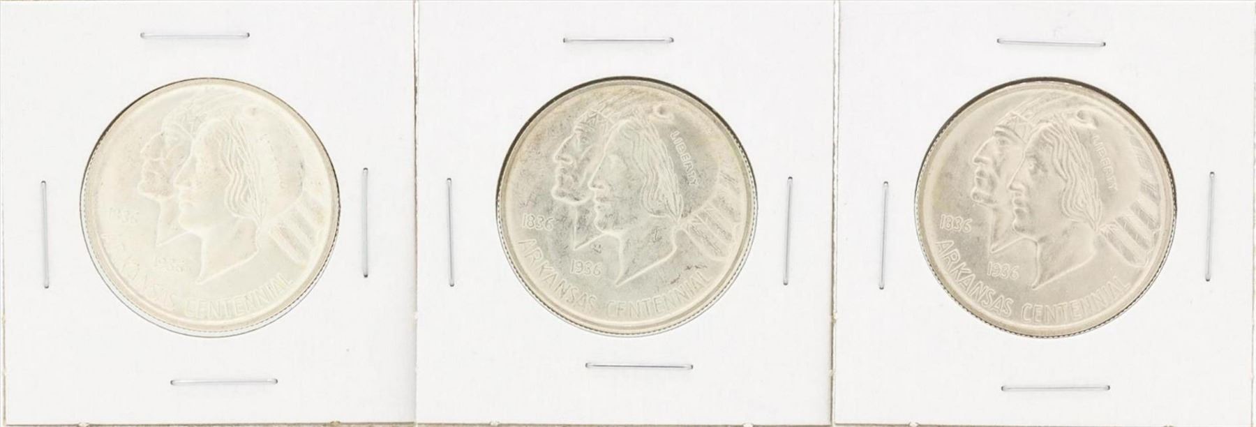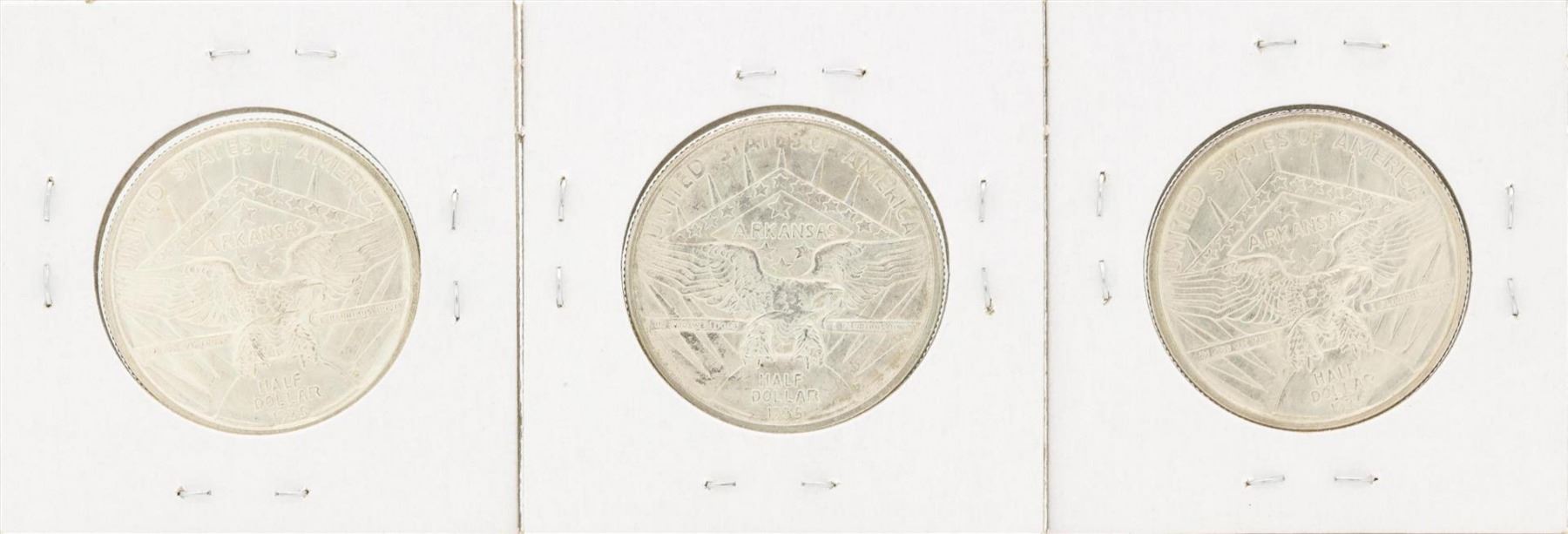 One Set of (3) 1935 Arkansas Centennial Commemorative Half Dollar Coins.