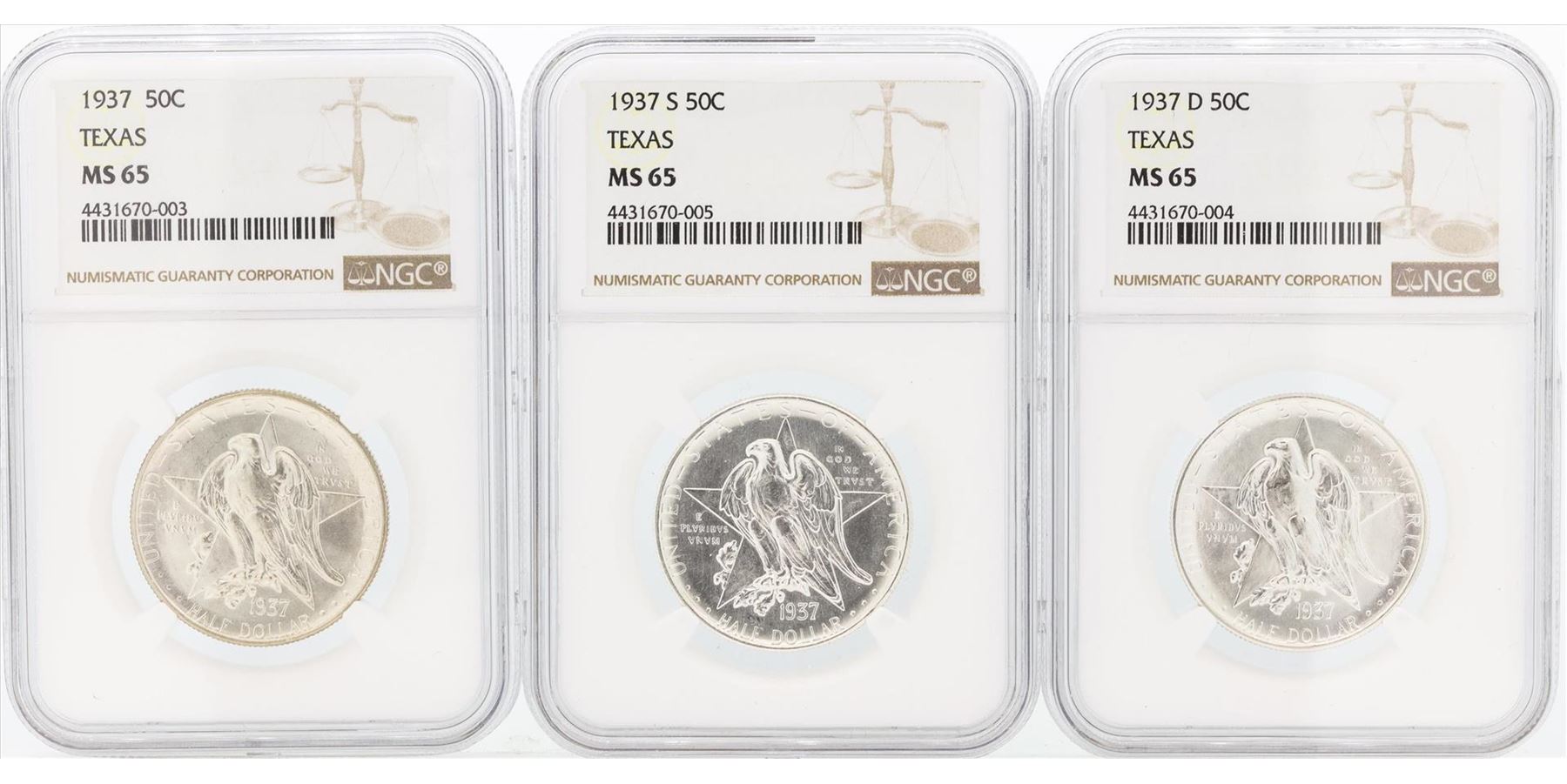 One Set of (3) 1937/D/S Texas Commemorative Half Dollar Coin NGC MS65. NGC Certified.