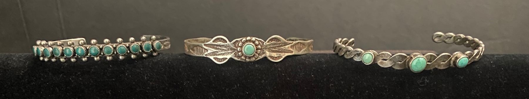 1 stone 3/8"H X 4 3/4"inside X 1 3/8"opening 36 grams all 3 Bracelets