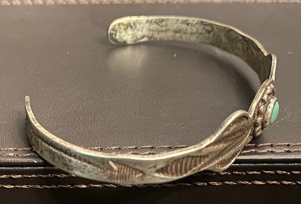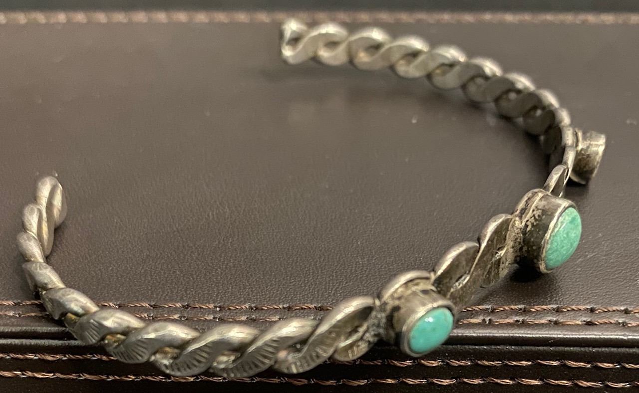 Bracelets measurements are opening, inside circumference, height. Weights are in Grams and are weighed to the best of our ability. The term signed means that, in our opinion, the signature is by the artist. All dating, Turquoise and hallmark attributions are to the best of our knowledge. Attributions are subjective and should be taken as such. Attributions in the description of any lot is left to the buyer to determine accuracy and the gallery is not responsible for any errors or omissions.