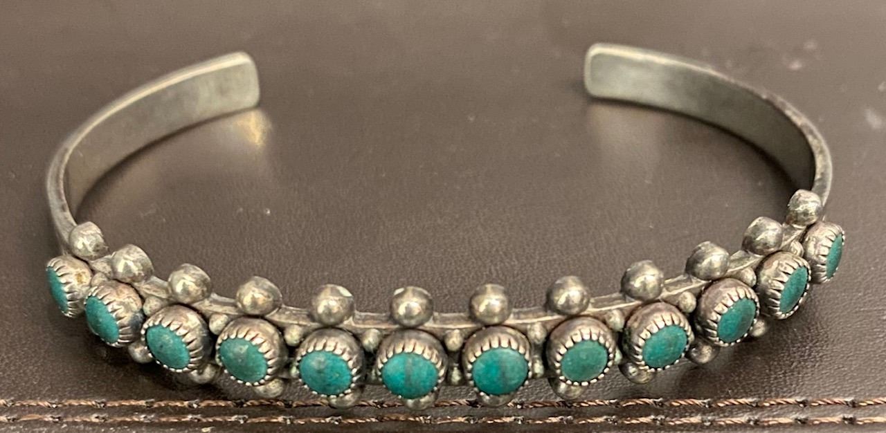 12 stone row bracelet 3/8"H X 5 1/4"inside X 1 1/4"opening