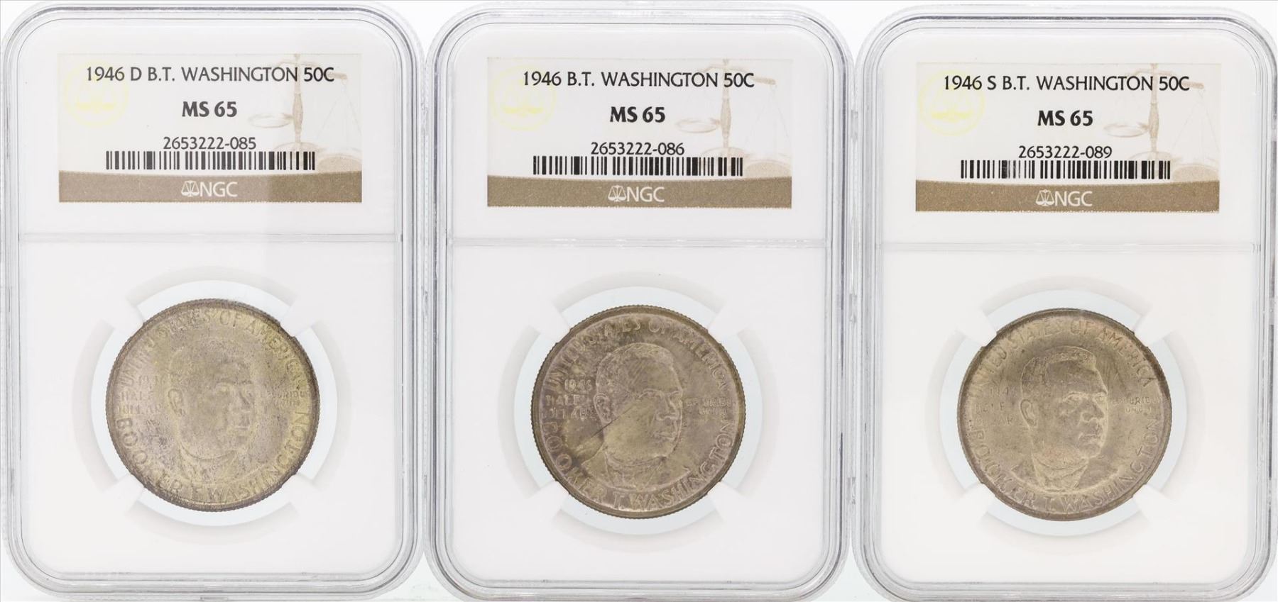 One Set of (3) 1946/D/S Booker T. Washington Memorial Half Dollar Coins NGC MS65. NGC Certified.