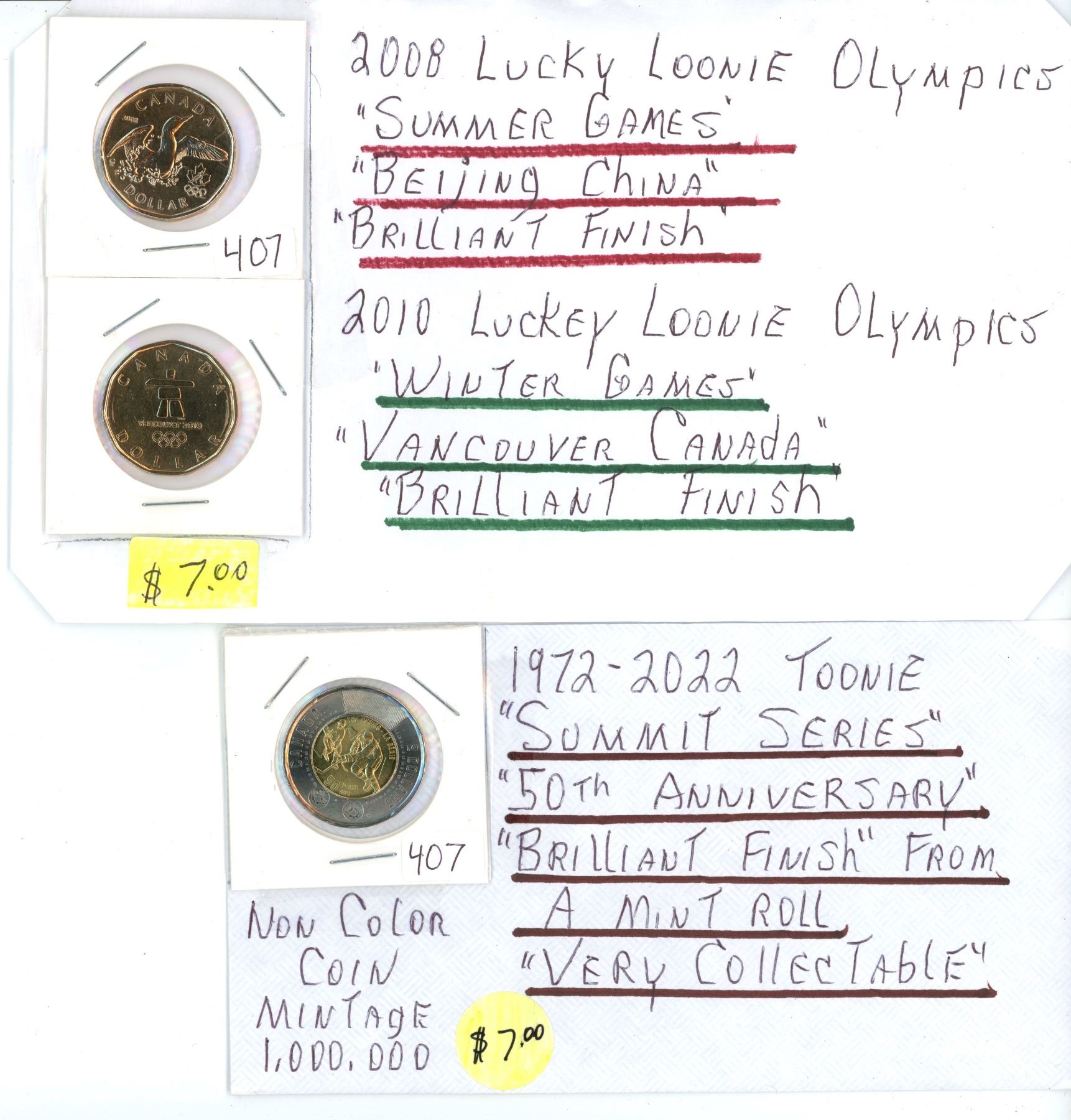 Set of 3, 1972-2022 Summit Series Toonie & 2 Loonies - 2008 Summer Olympics & 2010 Winter Olympics loonie