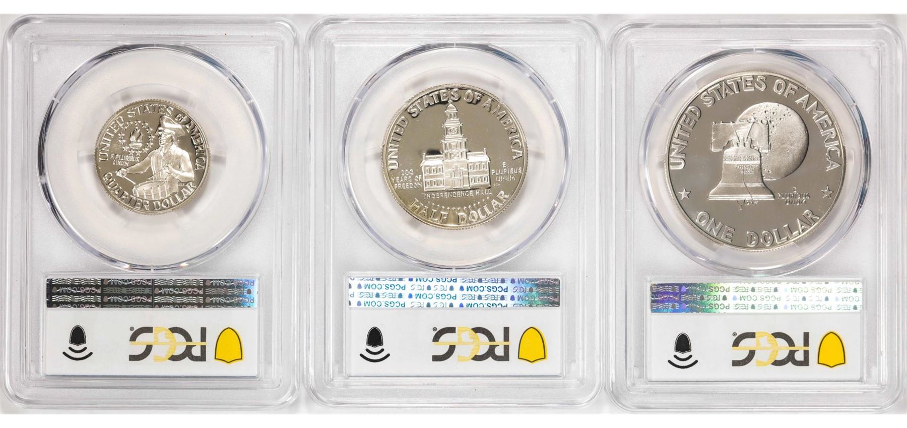 Set of 3 1976-S Proof Quarter, Half Dollar, Eisenhower Dollar Silver Coins PCGS PR69DCAM