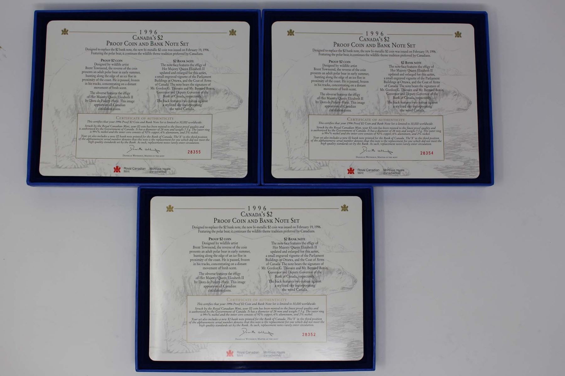 Set of 3 1996 Canada's $2 Proof Coin and Bank Note Sets