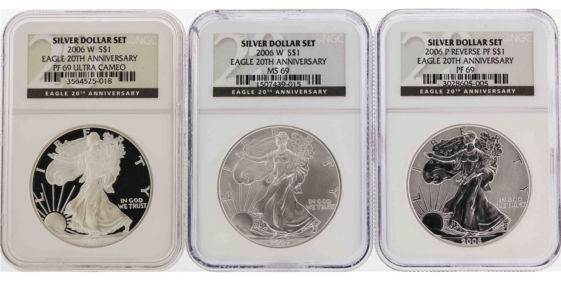 One Set of (3) 2006-W $1 American Silver Eagle Coins NGC PF69/MS69. NGC Certified.