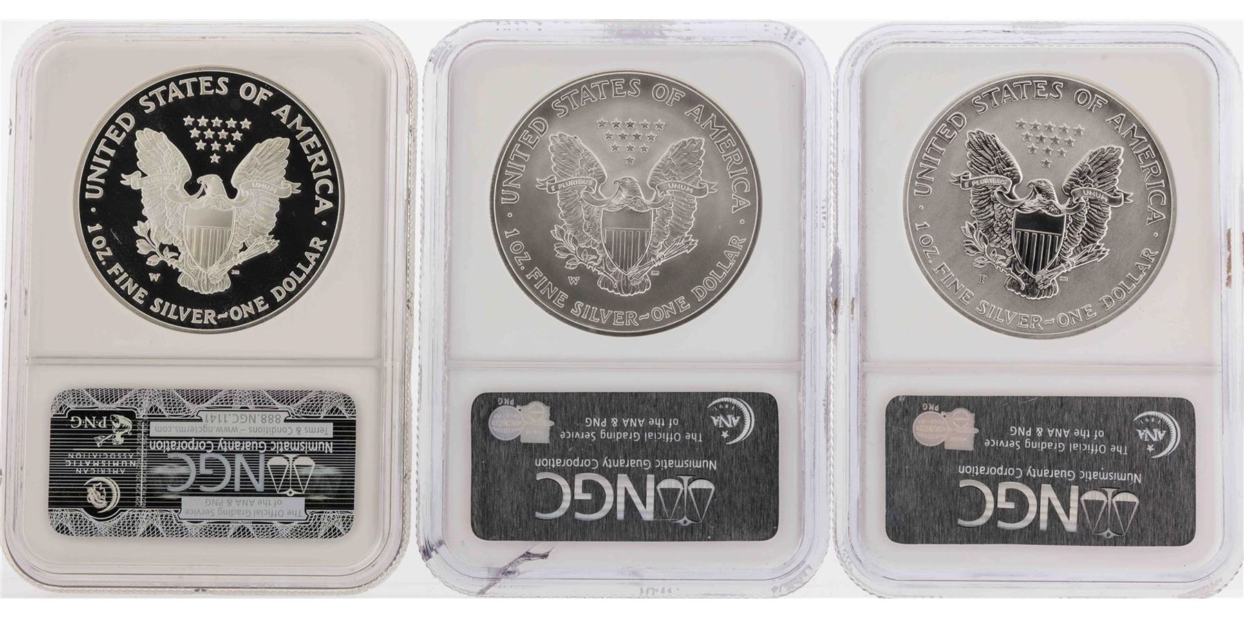 One Set of (3) 2006-W $1 American Silver Eagle Coins NGC PF69/MS69. NGC Certified.