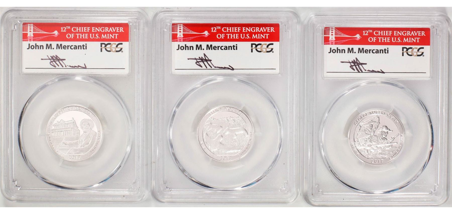 One Set of (3) 2017-S Proof National Parks Quarter Coins PCGS PR70DCAM FDOI Mercanti. PCGS Graded.