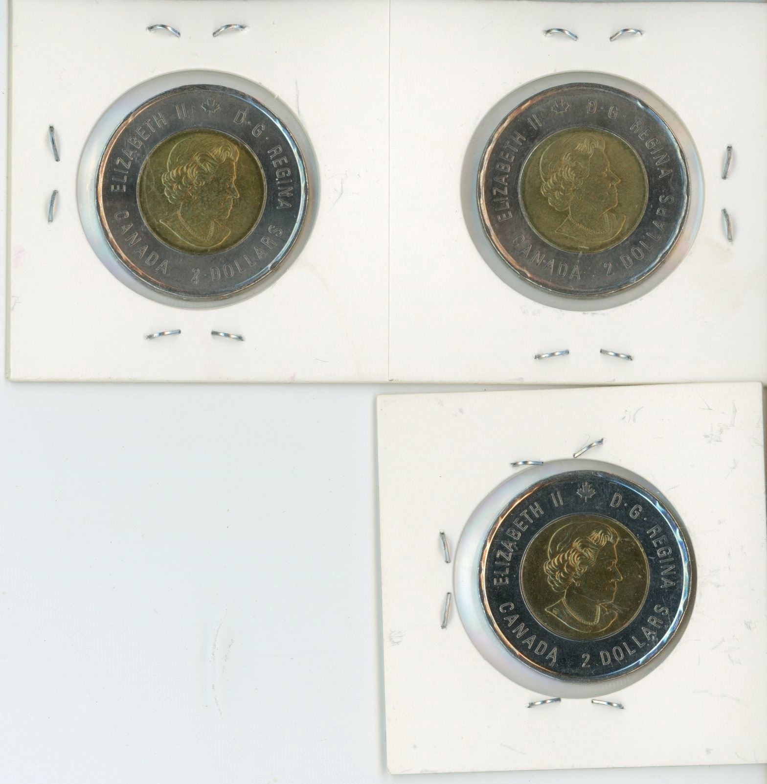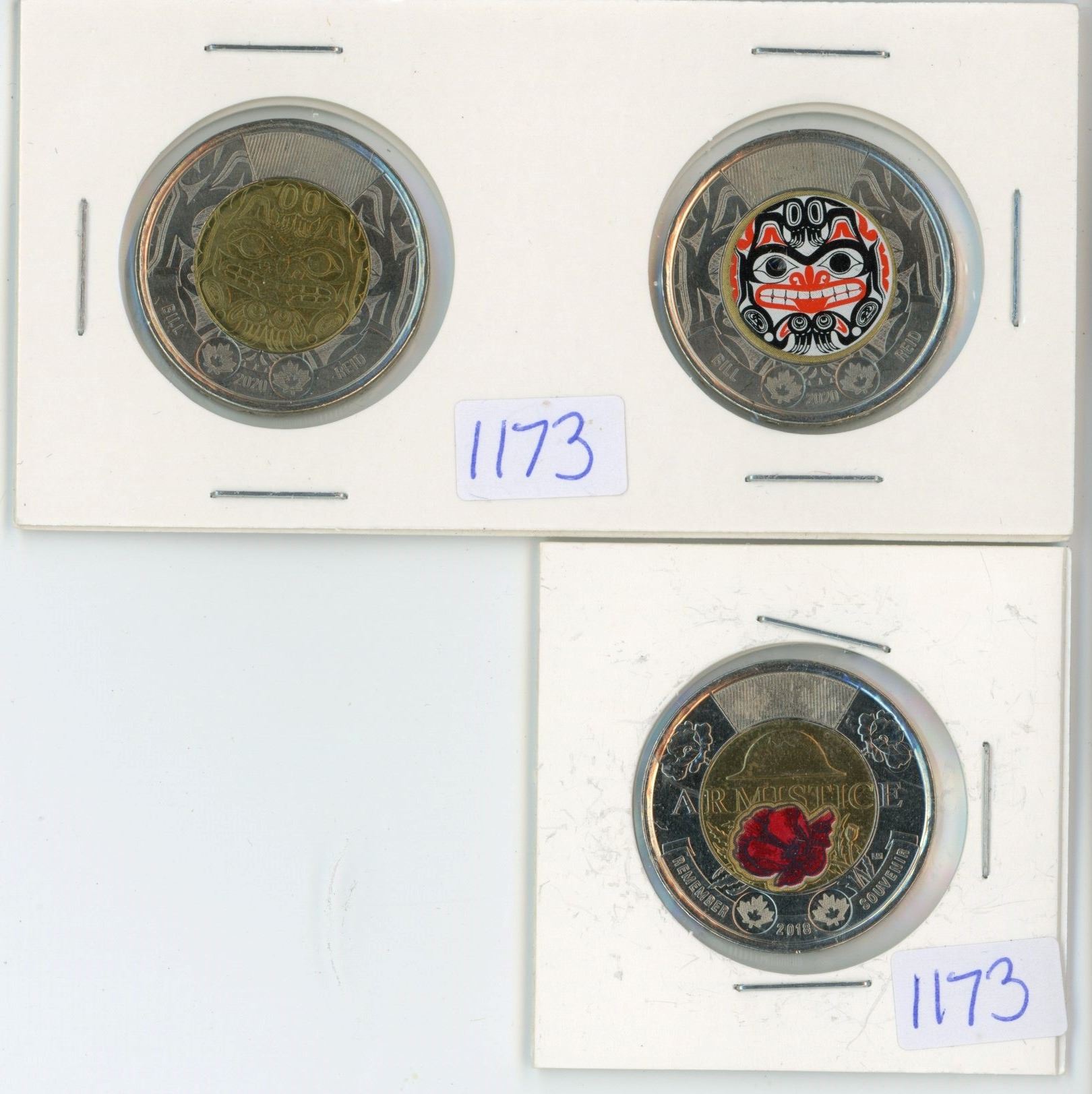 Set of 3 - 2020 "Haida Grizzly Bear" & 2018 "Armtice - Remembrance" Canadian 2 dollar coins