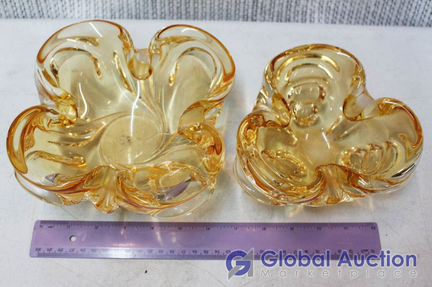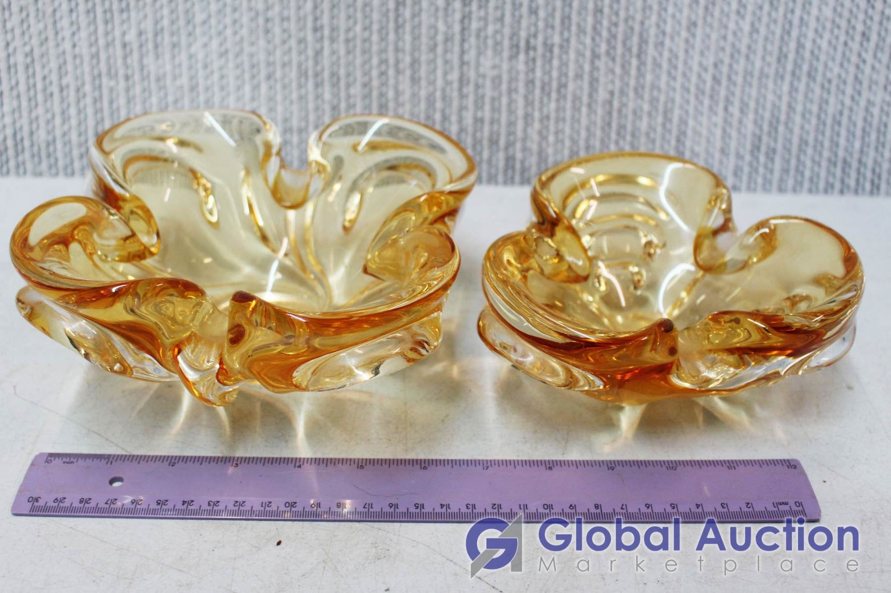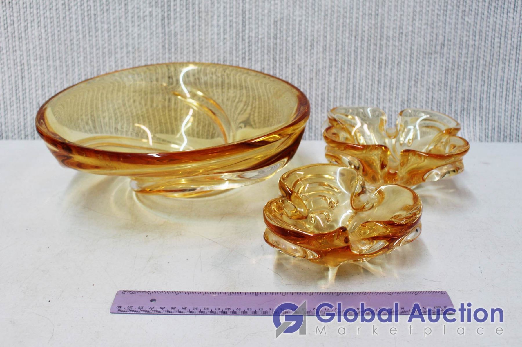 Set of (3) Art Glass Bowls (Amber/Yellow)