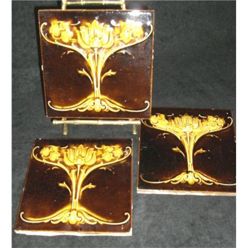 Set of 3 Art Nouveau Tiles, staped England on the back. Shipping quote available with zip code.