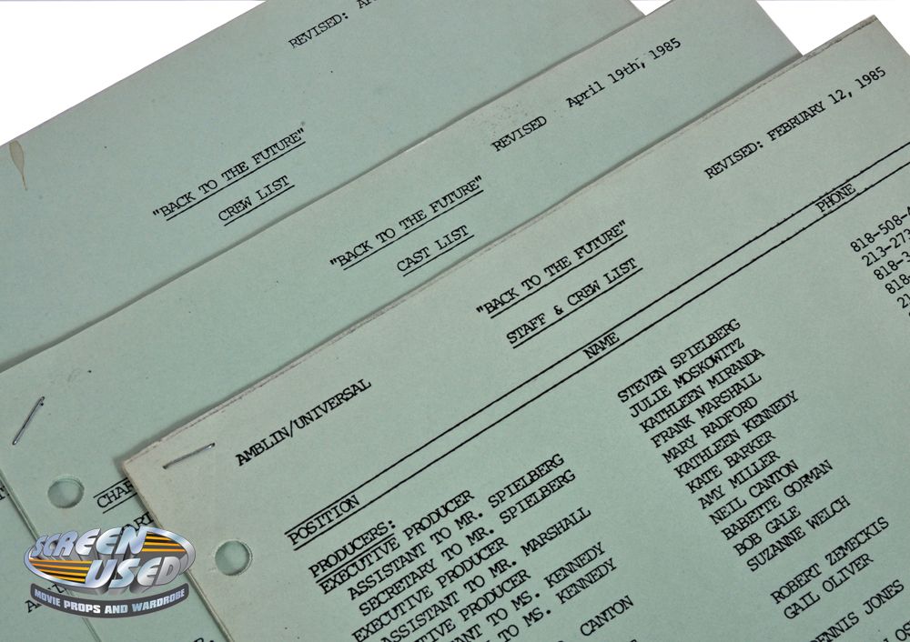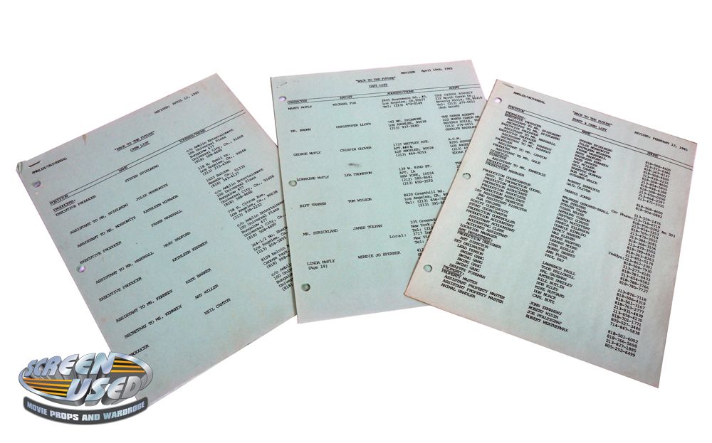 (Universal, 1985) This is a set of three cast, crew and staff contact sheets. The 3 sets comprise a total of 23 pages. Some slight staining and wear from use. Otherwise in good condition.