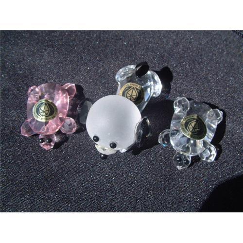 Set of 3 Bohemian hand made crystal miniatures in shape of a aqua and pink turtles and one dog with frosted crystal head. Highly collectible crystal hand made animals with intricate details. The size ranges from 4 cm. (1.5") in length for the turtles, to 7 cm. (2.8") length for the dog. Estimated value: $700.