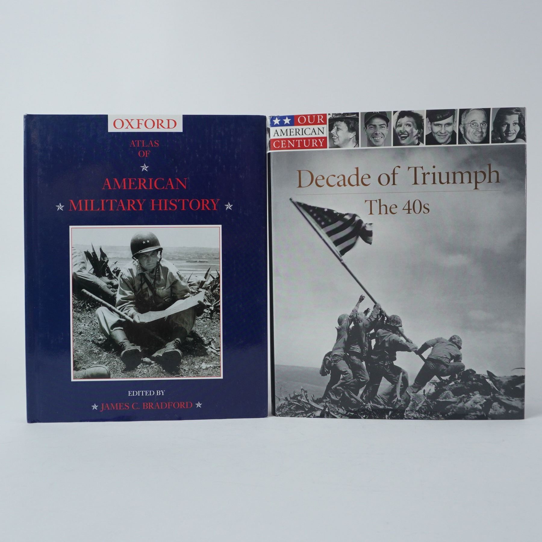 This lot features a collection of three books focused on American military history, providing valuable insights into significant wars and events of the 20th century. Included is The West Point Atlas of American Wars, Volume II: 1900-1918, edited by Brigadier General Vincent J. Esposito, offering detailed maps and analysis of early 20th-century conflicts. Decade of Triumph: The 40s is part of the Our American Century series, highlighting key moments from World War II with powerful imagery and historical context. Oxford Atlas of American Military History, edited by James C. Bradford, presents a comprehensive visual and textual analysis of military campaigns and strategies throughout American history. This set is ideal for collectors, historians, and military enthusiasts.