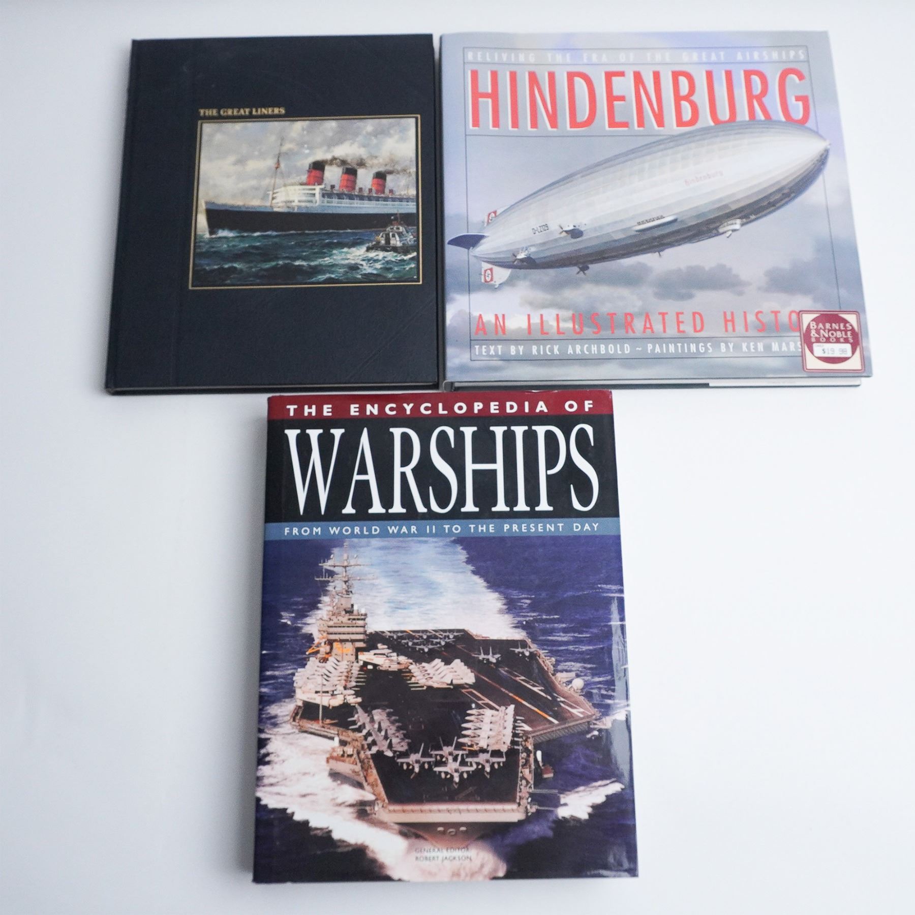 This lot includes three books exploring significant moments in maritime and aviation history. The Great Liners (The Seafarers Series, Time-Life Books) provides an in-depth look at the rise and legacy of ocean liners that defined luxury travel. The Encyclopedia of Warships, edited by Robert Jackson, offers a comprehensive guide to naval vessels, detailing their construction, history, and operational roles. Hindenburg: An Illustrated History by Rick Archbold presents a visual and historical narrative of the famous airship, covering its engineering, fateful voyage, and the impact of its disaster. These books serve as valuable references for maritime, aviation, and military enthusiasts.