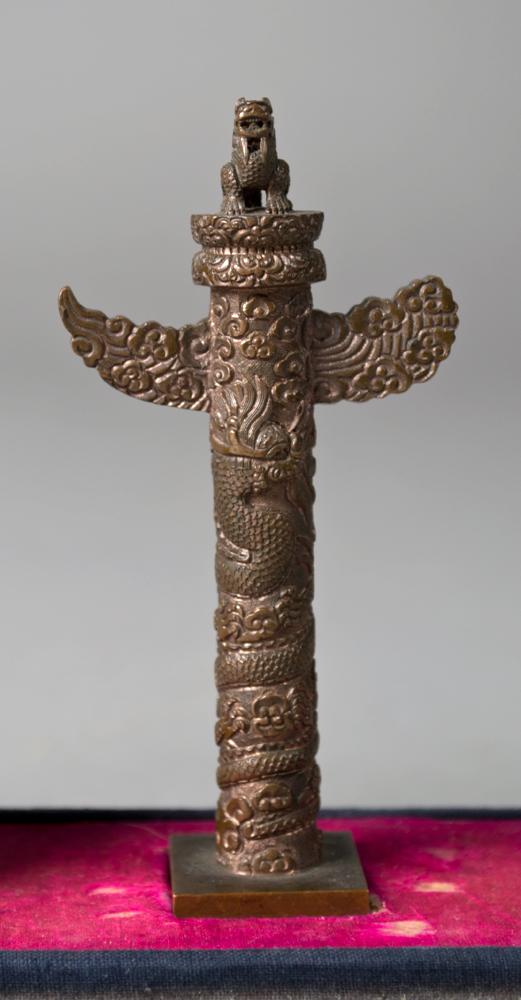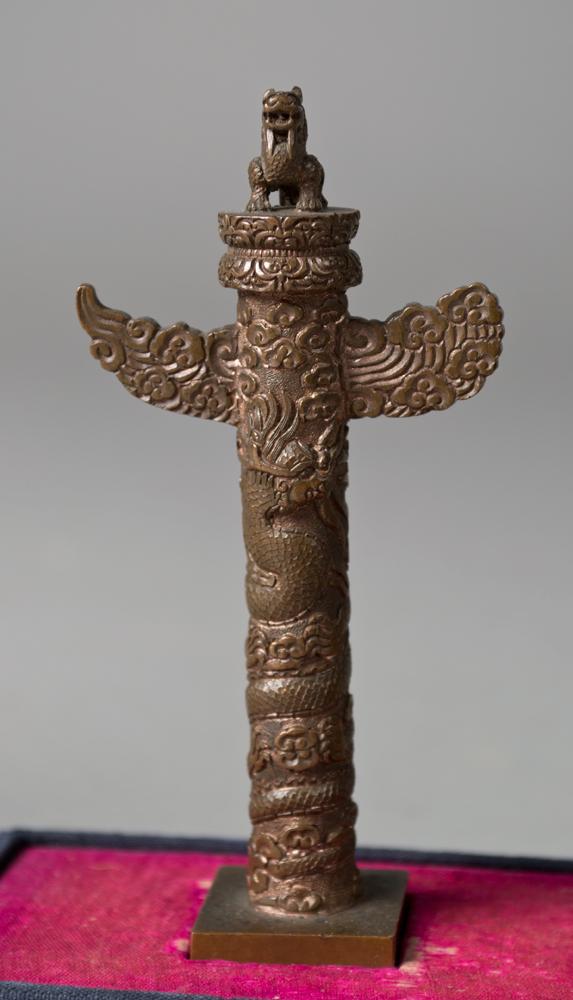 Depicting ornamental columns and dragon. Set in original box tallest 4.25"H Circa 19th Century.