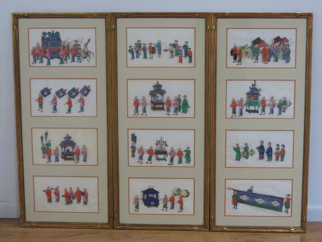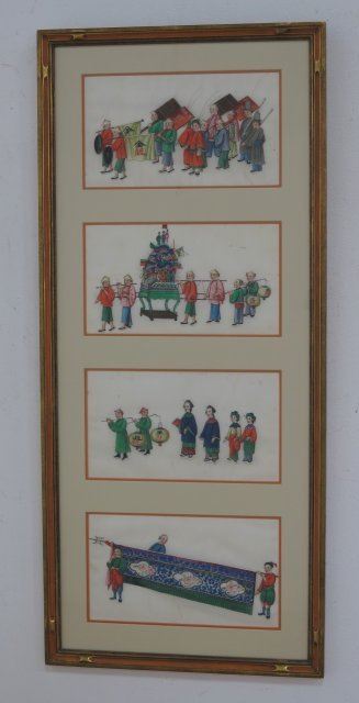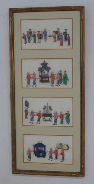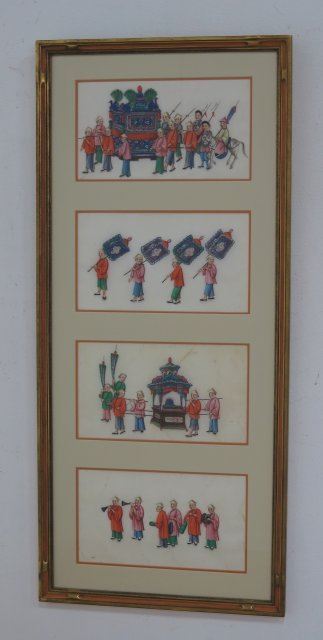 4 scenes per frame. Each image approx. 7" x 12" unframed, 39 1/2" x 17 3/4" framed.