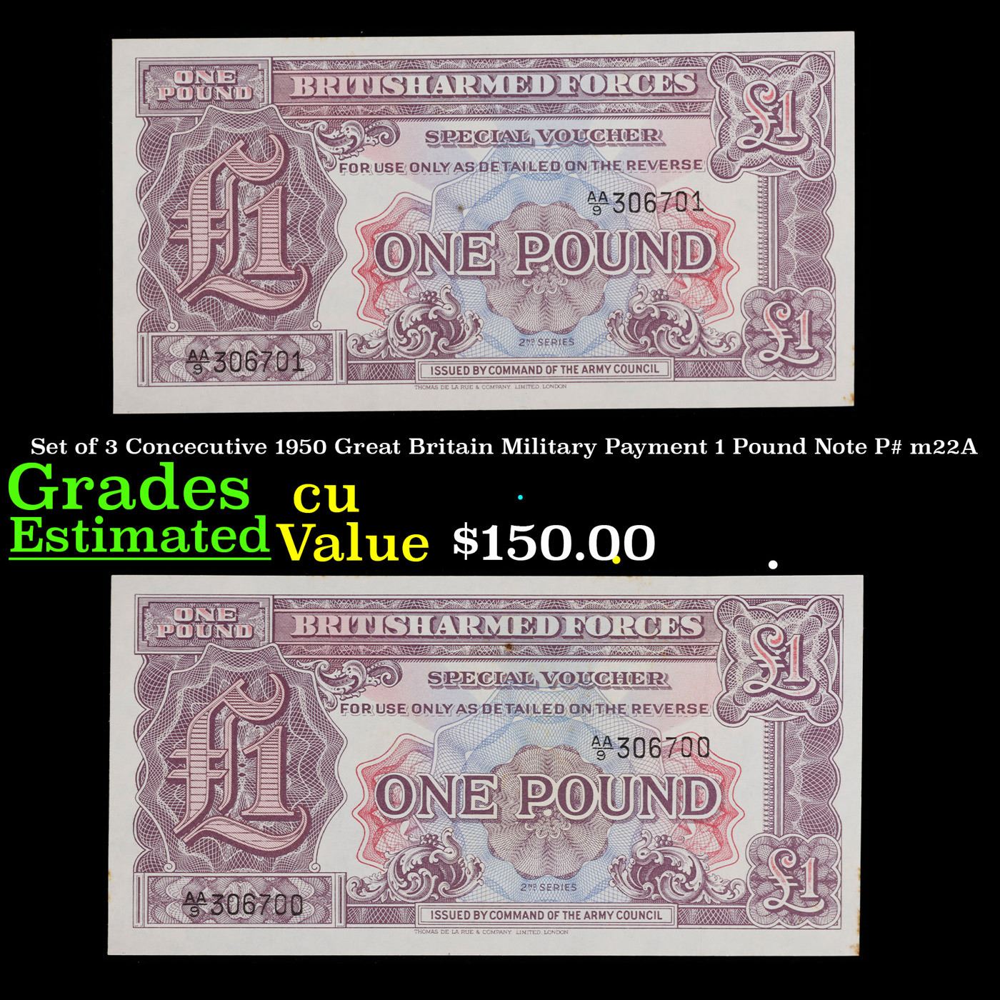 Set of 3 Concecutive 1950 Great Britain Military Payment 1 Pound Note P# m22A Grades CU