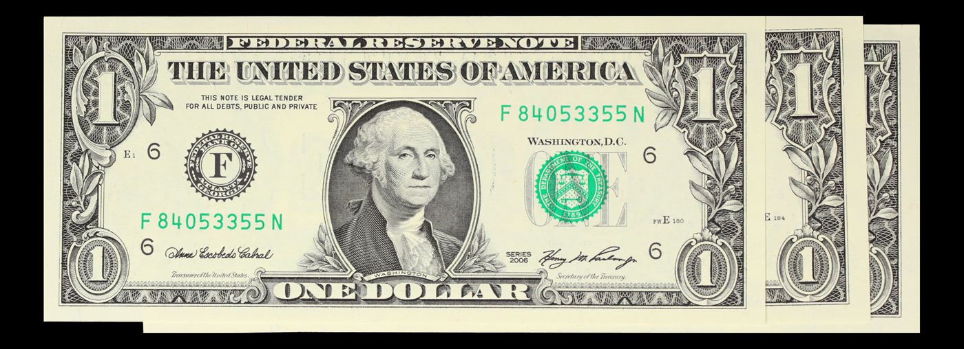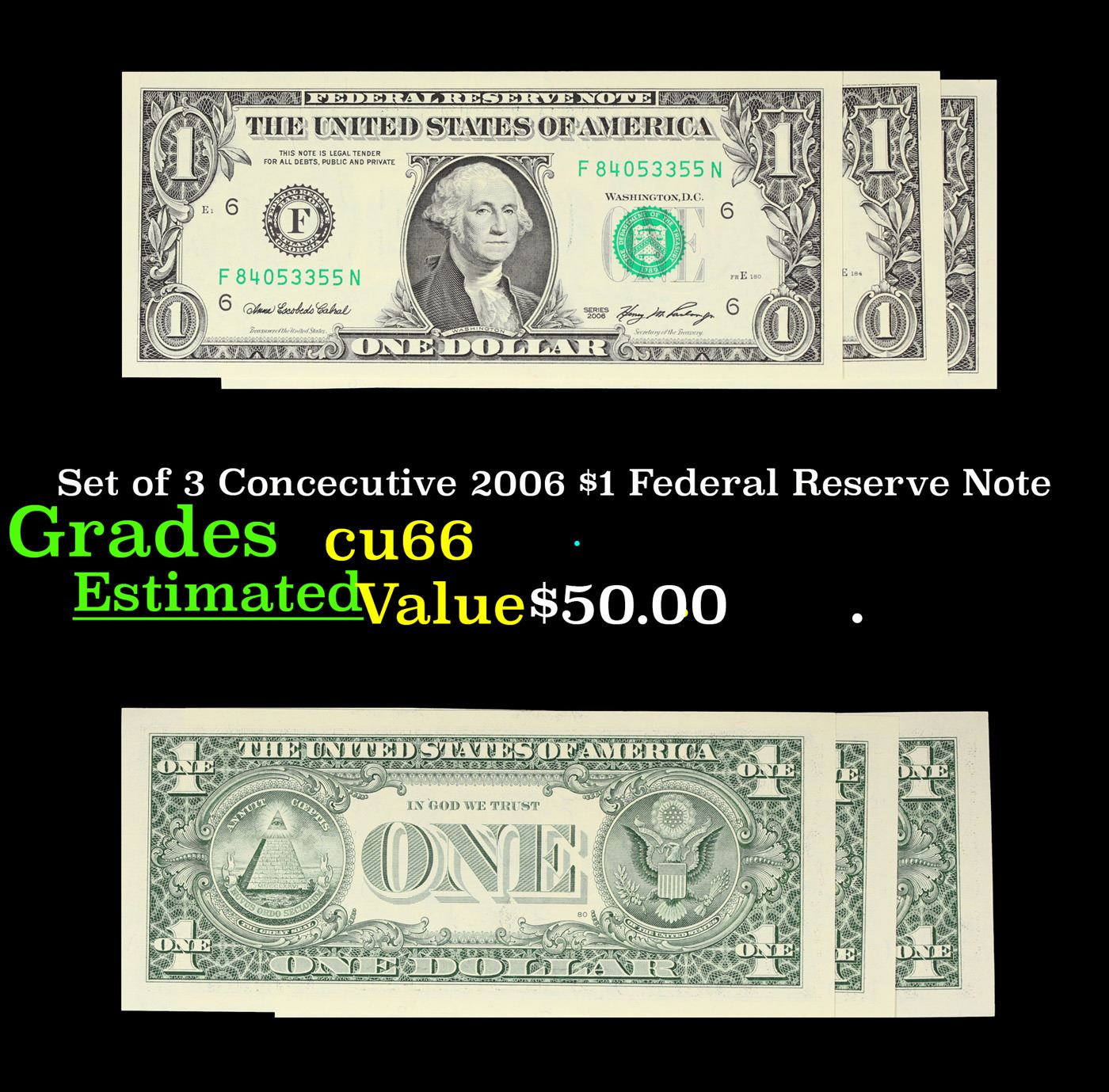 Set of 3 Concecutive 2006 $1 Federal Reserve Note Grades Gem+ CU.