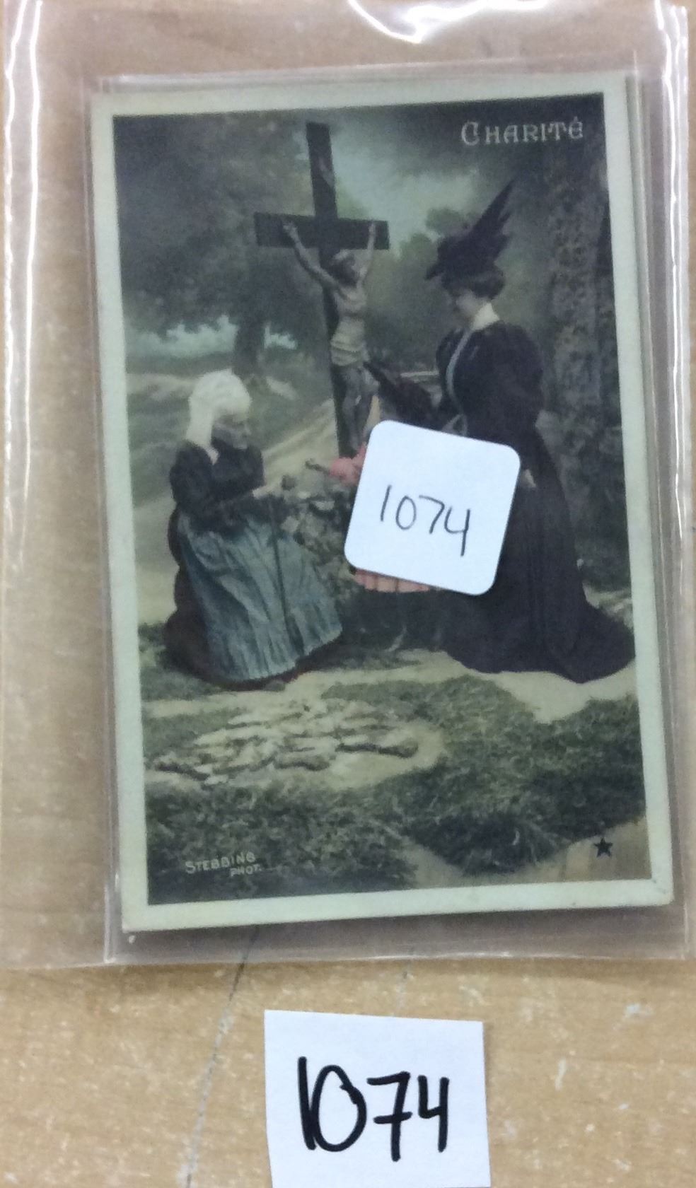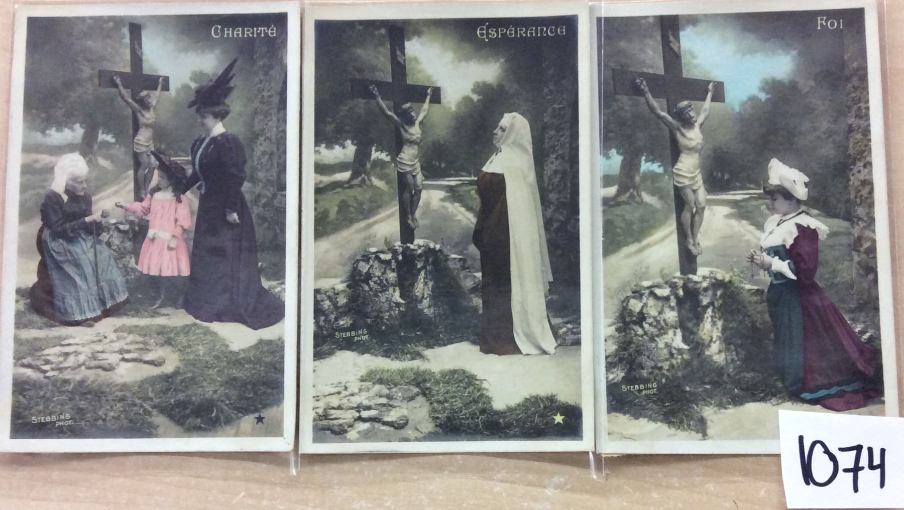 Set of 3 Faith, Hope & Charity Tinted Photo Religious Postcards