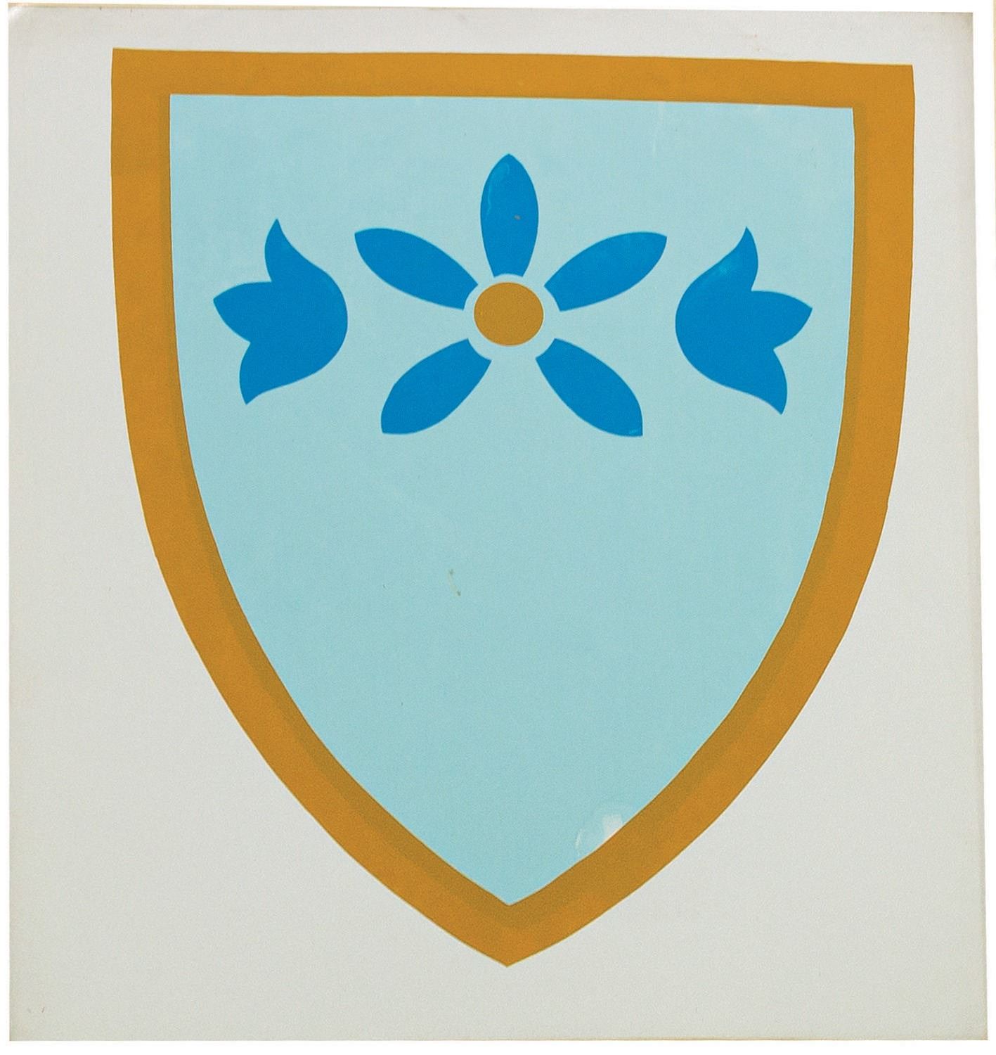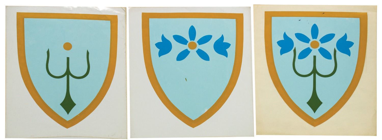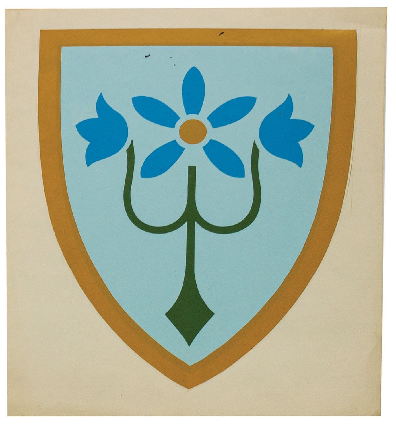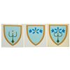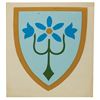 (Disneyland, c.1990s) A set of (3) Fantasyland floral decal test prints. The silkscreened decals represent different stages of the same image, with one depicting solely the gold and blue screens, one with the gold and green screen, and one with the complete image of a flower. In all cases, the decals are still adhered to the original paper release liners and measure 11.25"x9" on 11"x13" sheets. They are in generally good condition, with some black paint flecks and handling wear.