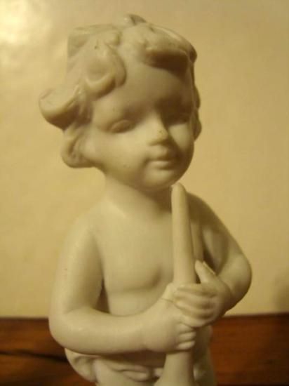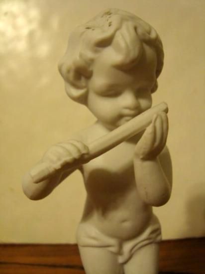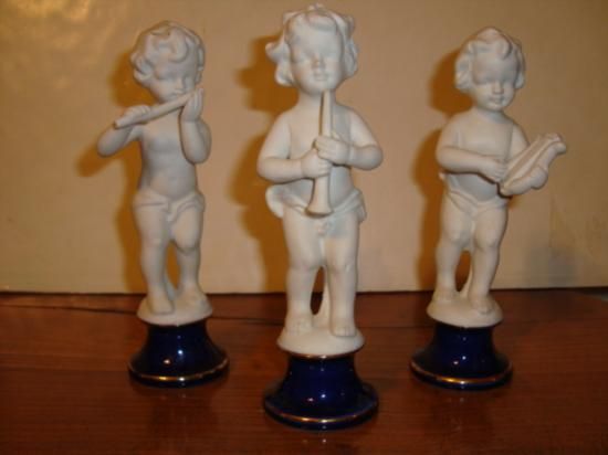 Here is a set of 3 French cherubs with musical instruments, bisque porcelain from Limoges, not signed.Very good condition (No chips, cracks or repairs). Would be a great value to any Limoges box collection. h-6.5"/ w-2"/ d-2" This price is fo