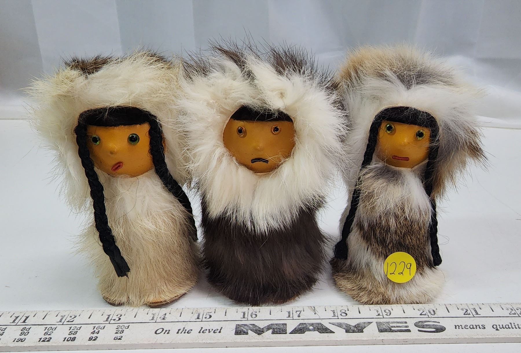 Set of 3, Fur coat (faux) covered dolls from Amrams - Toronto