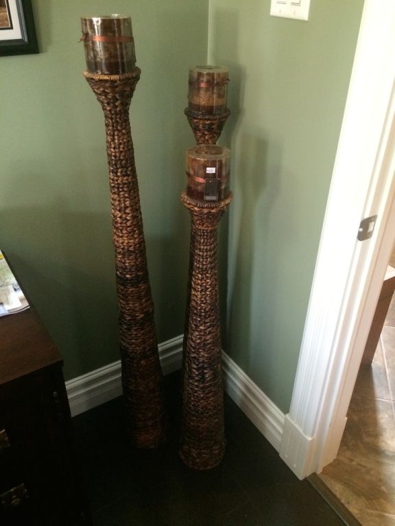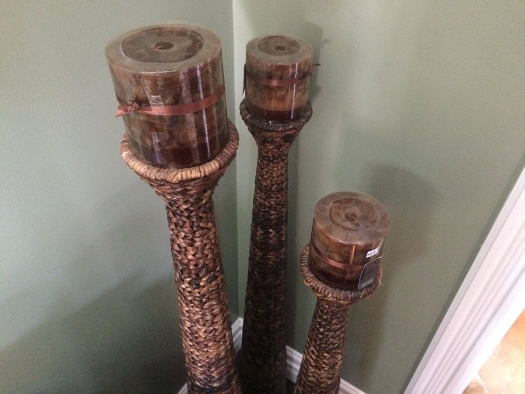 Set of 3 Graduating Size Floor Standing Wicker Candle Holders