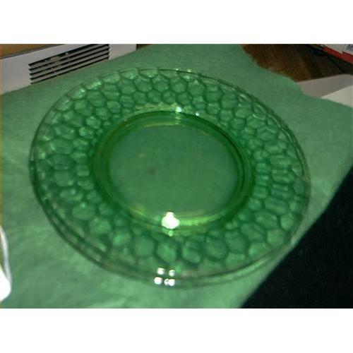 <tr><td>Title:Set of 3 Green Depression Plates </td></tr>