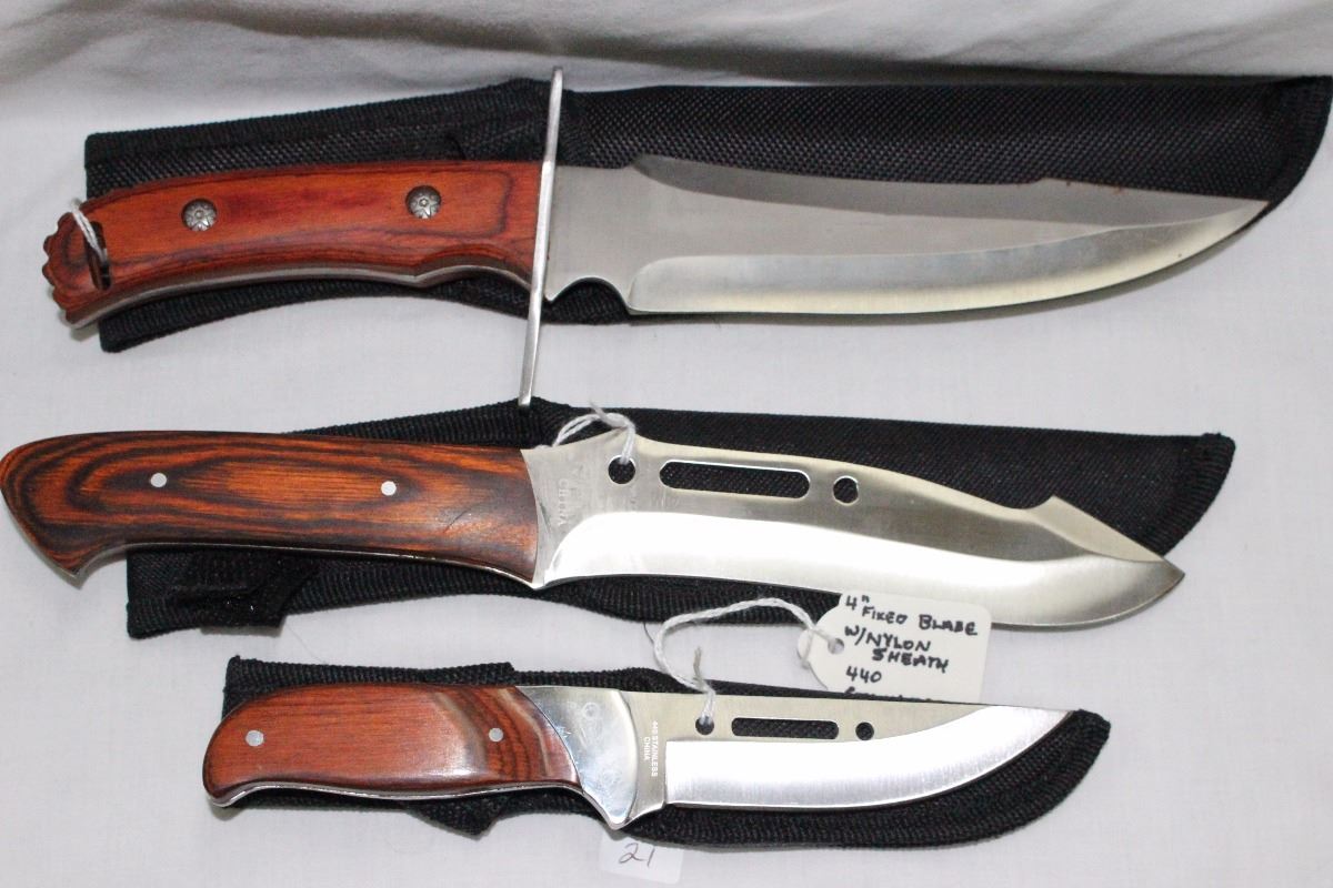 Set of 3 Hunting Knives with Sheaths 1 - 7", 6" & 4" Blades .440 Steel