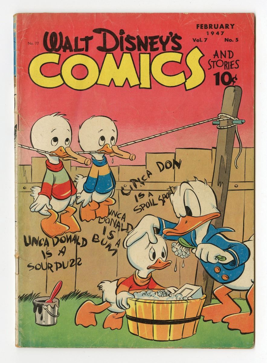 (KK Publishing, 1947) Three (3) early issues of Walt Disney’s comics and stories with artwork by the legendary Carl Barks. Each comic measures 10.25"x7.25". All in overall good condition with varying degrees of wear.