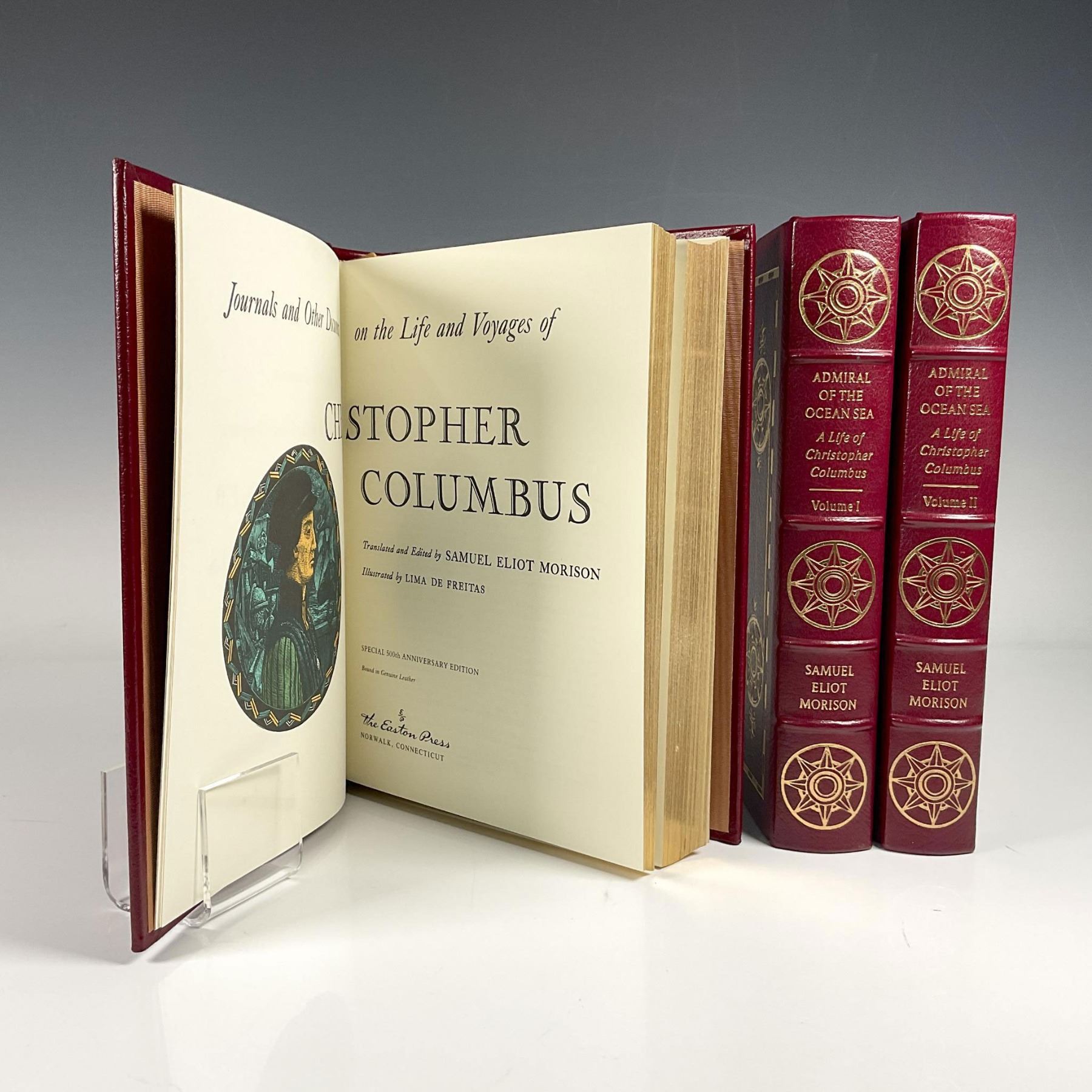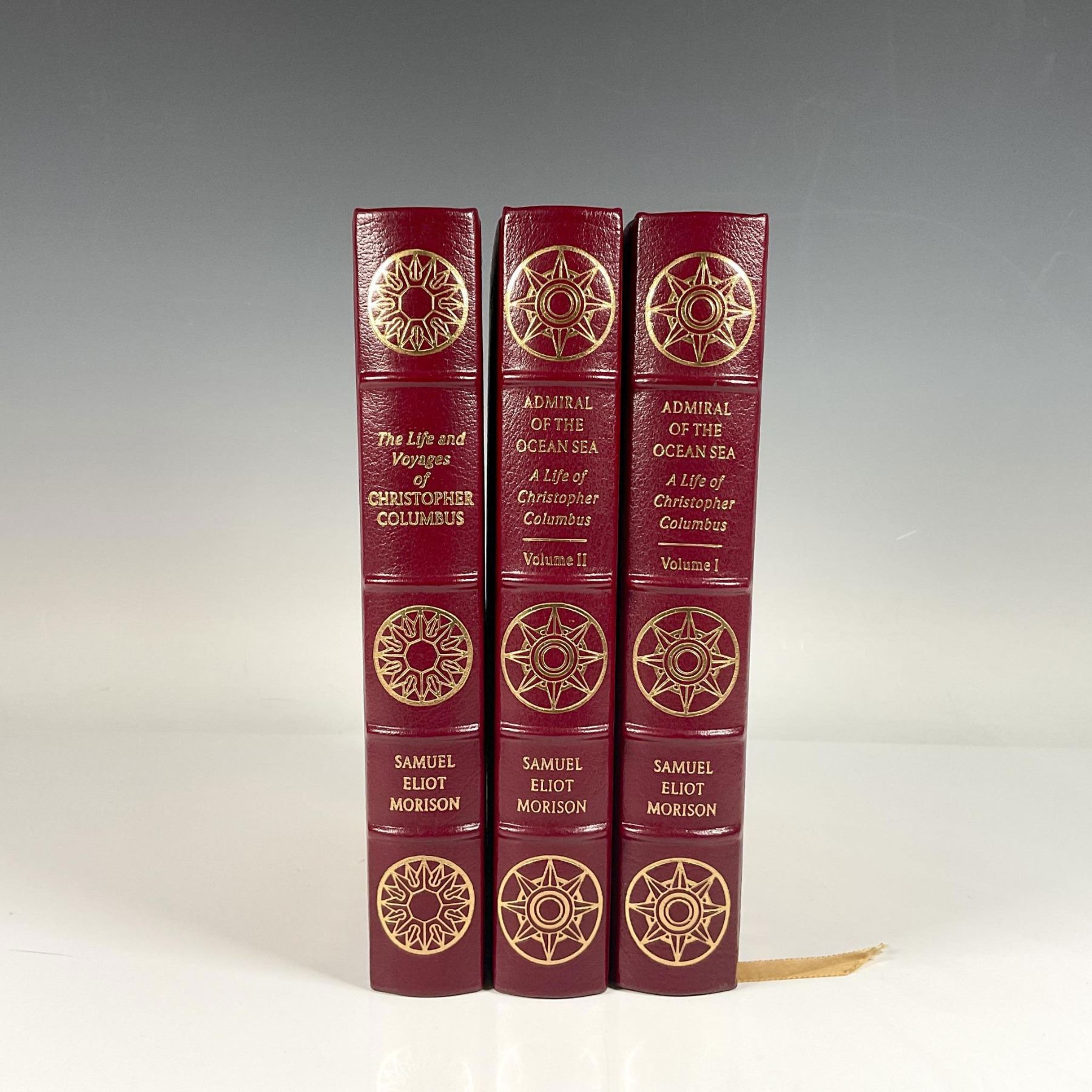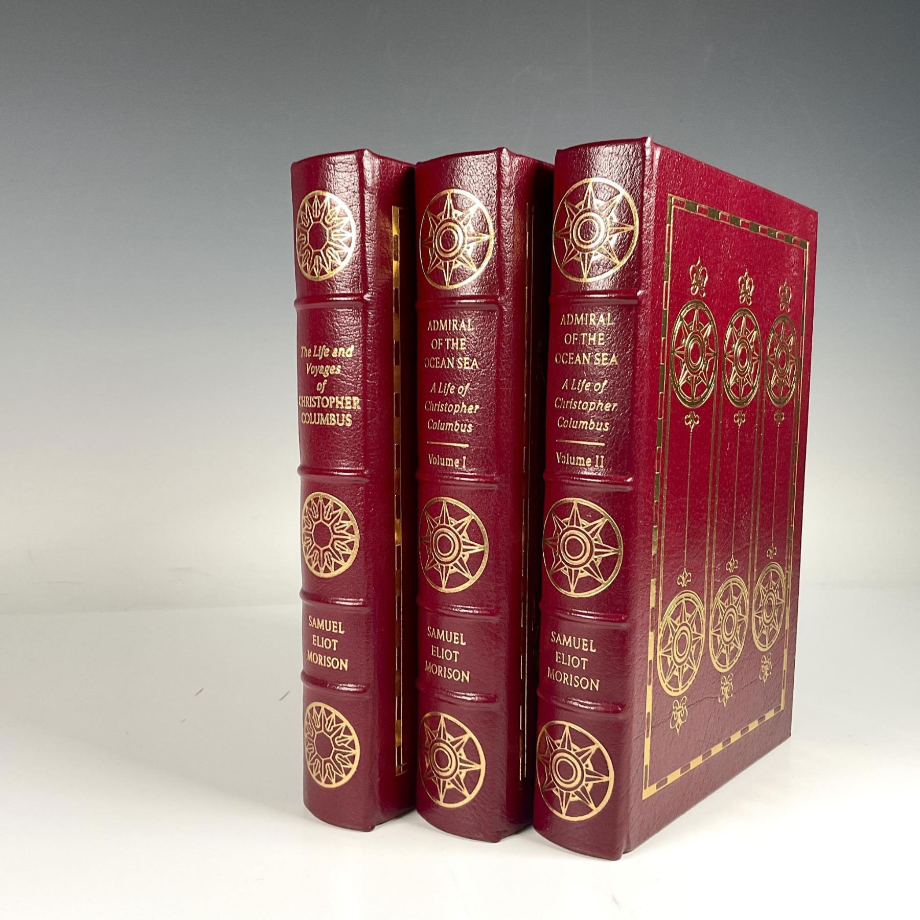 Set of three volumes by Samuel Eliot Morrison, including Admiral of the Ocean Sea and the Life and Voyages of Christopher Columbus. This book delves into Christopher Columbus life, exploring his voyages, and the impact of his discoveries. Each book dimensions 7.5"L x 1.5"W x 10"H. Publisher: Easton Press, United States, 1990 and 1991. Issued: 1990 and 1991