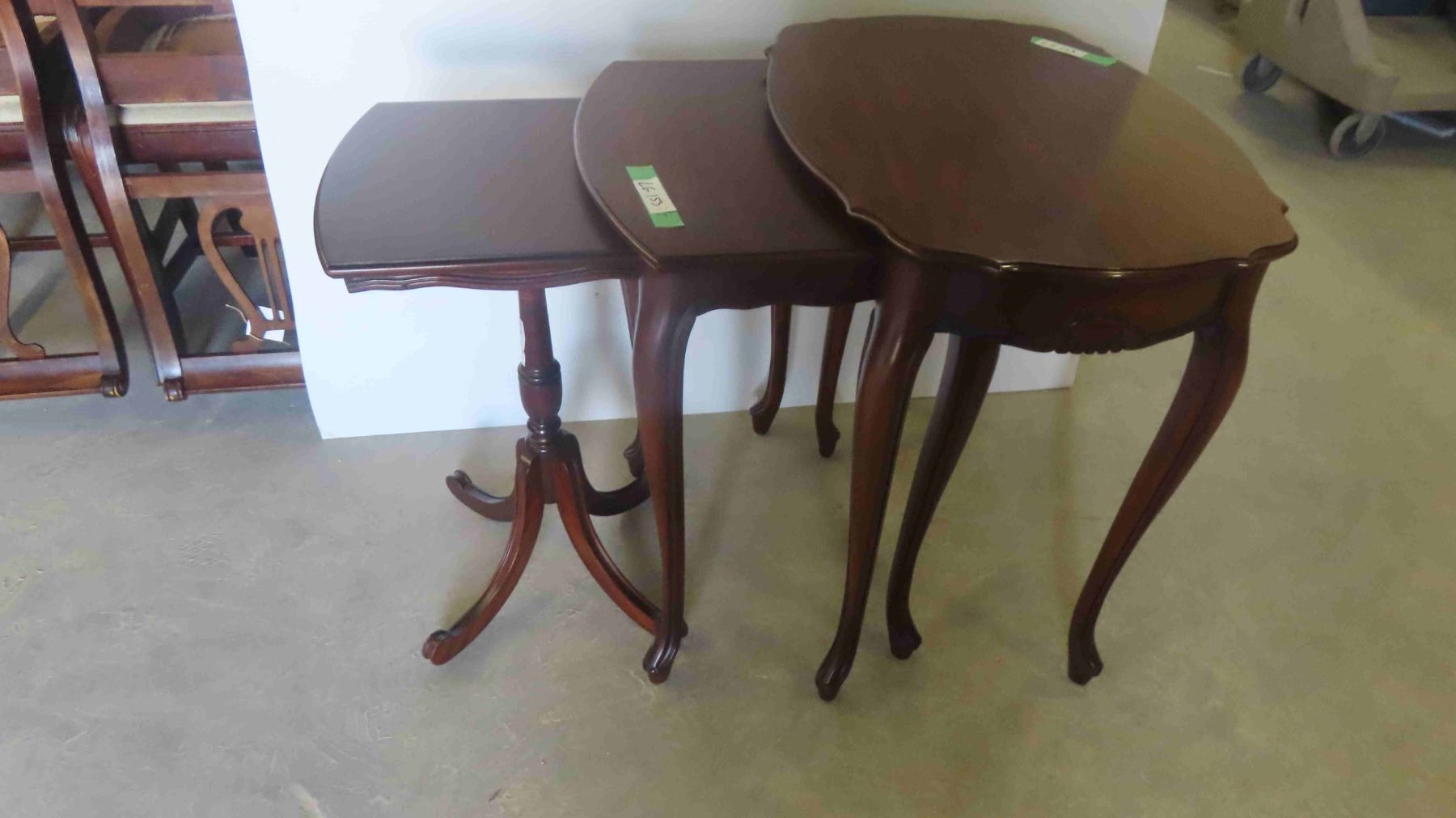 Set of 3 Mahogany Nesting Tables with Queen Anne Legs, Largest Measures