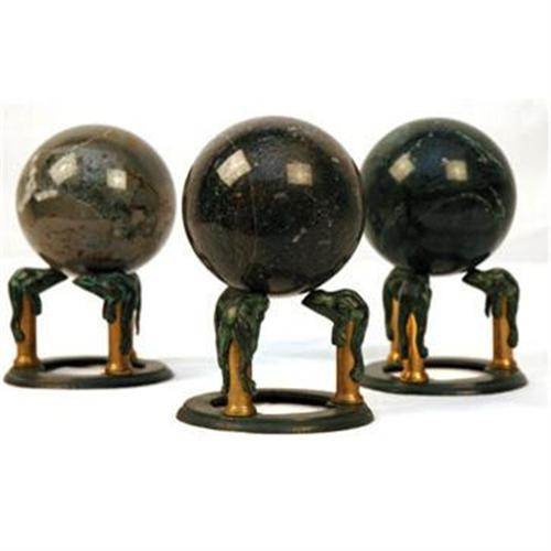 <tr><td>Title:Set of 3 Marble Globes on Frog Motif Stands</td></tr>