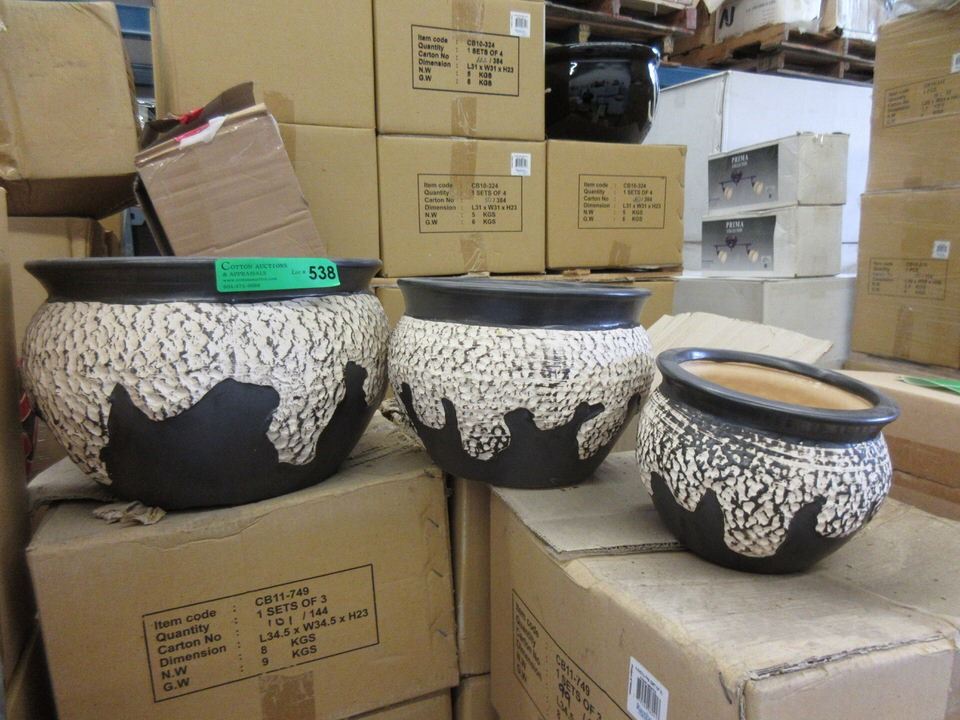 Set of 3 New Beige & Charcoal Ceramic Plant Pots