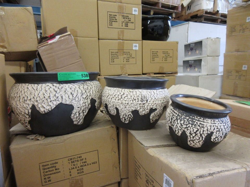 Set of 3 New Beige & Charcoal Ceramic Plant Pots