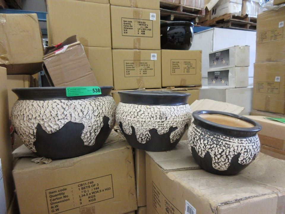Set of 3 New Beige & Charcoal Ceramic Plant Pots