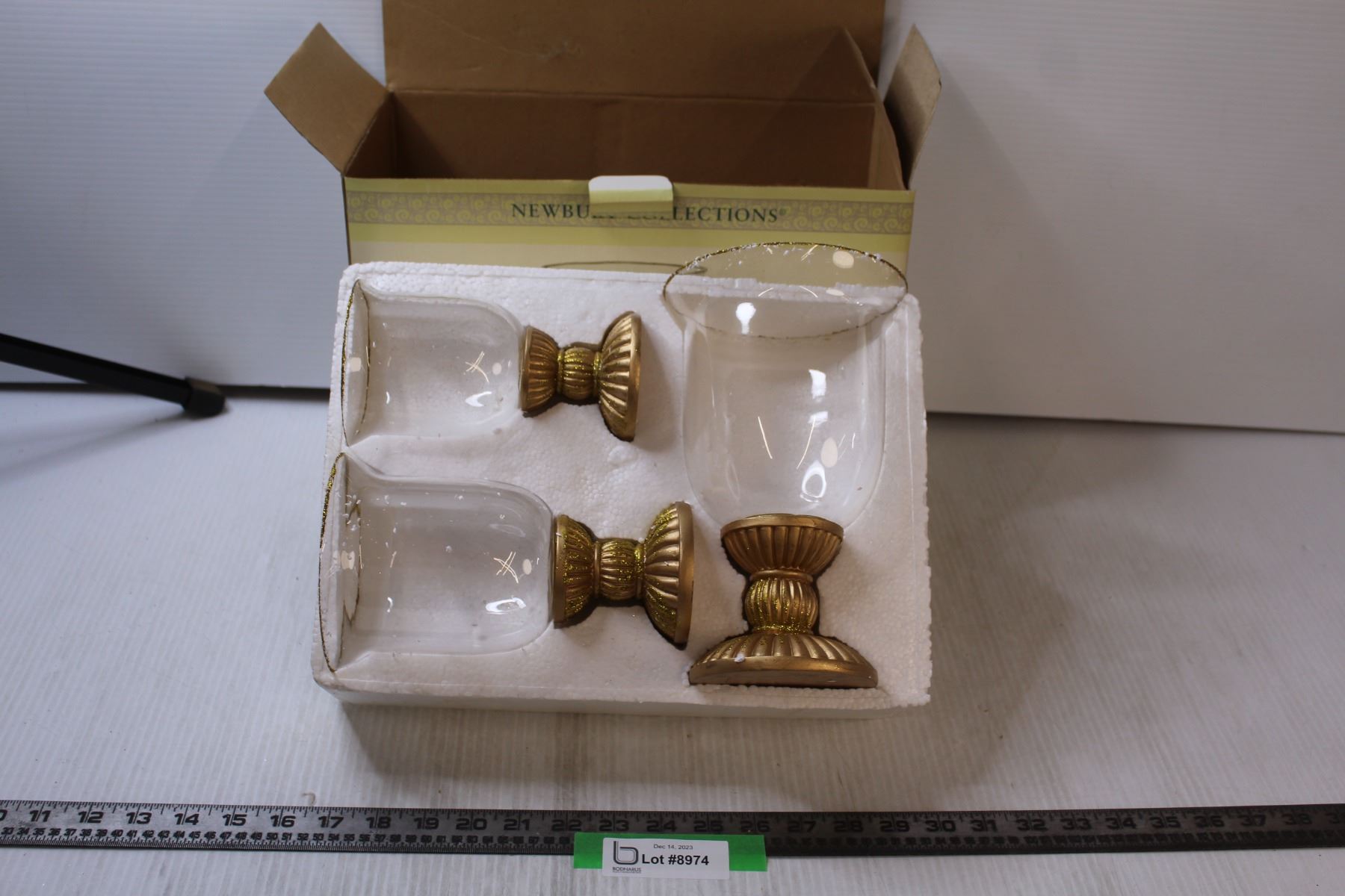 Set of 3 Newbury Golden Rim Hurricane Candle Holders