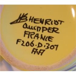Set of 3 Quimper handled drinking mugs. Stand 4 1/4" tall. Marked on bottom "Hg. Henriot-Quimper-France-F206.D.307" and artist initials SK, AA, PF.