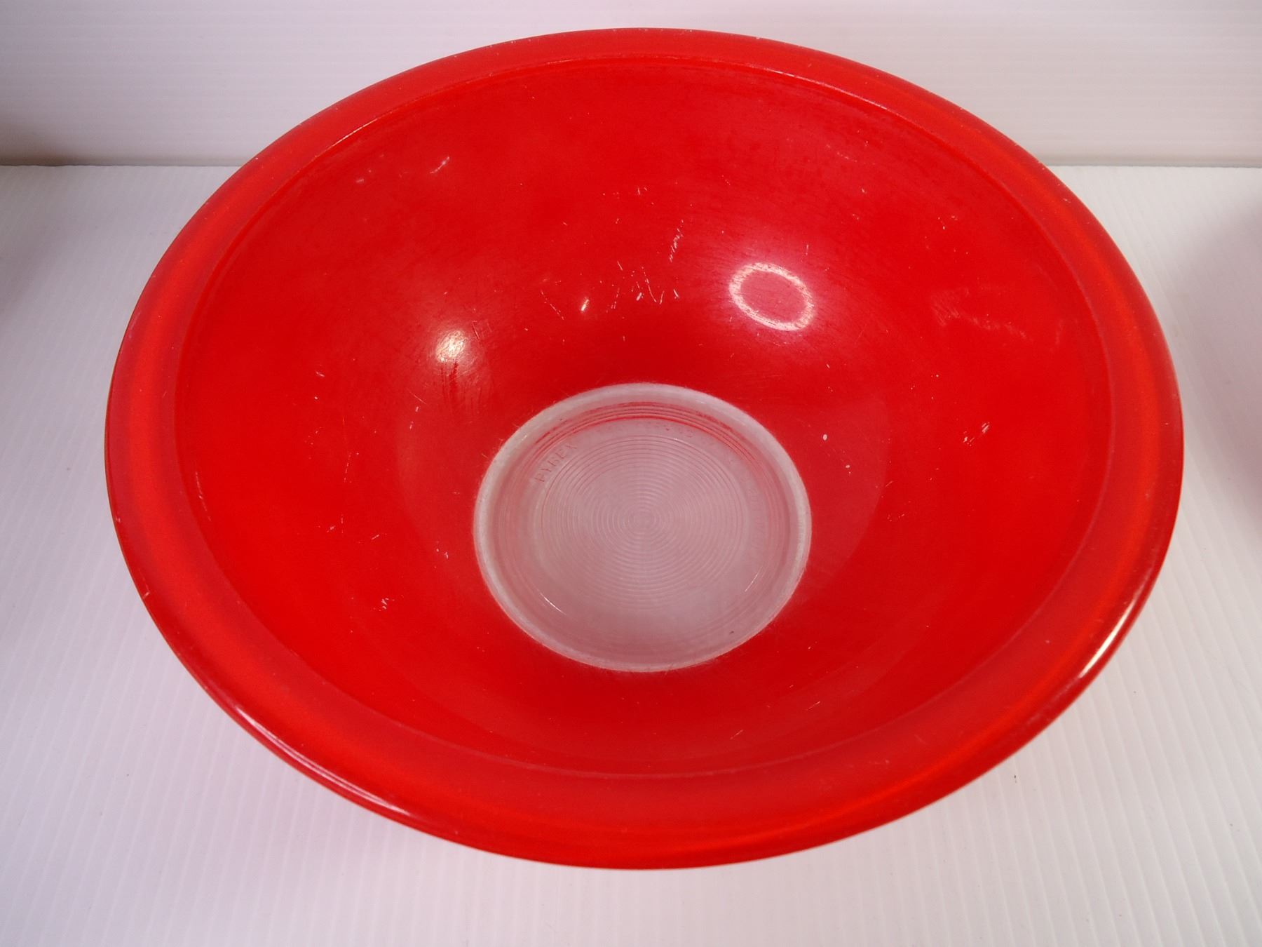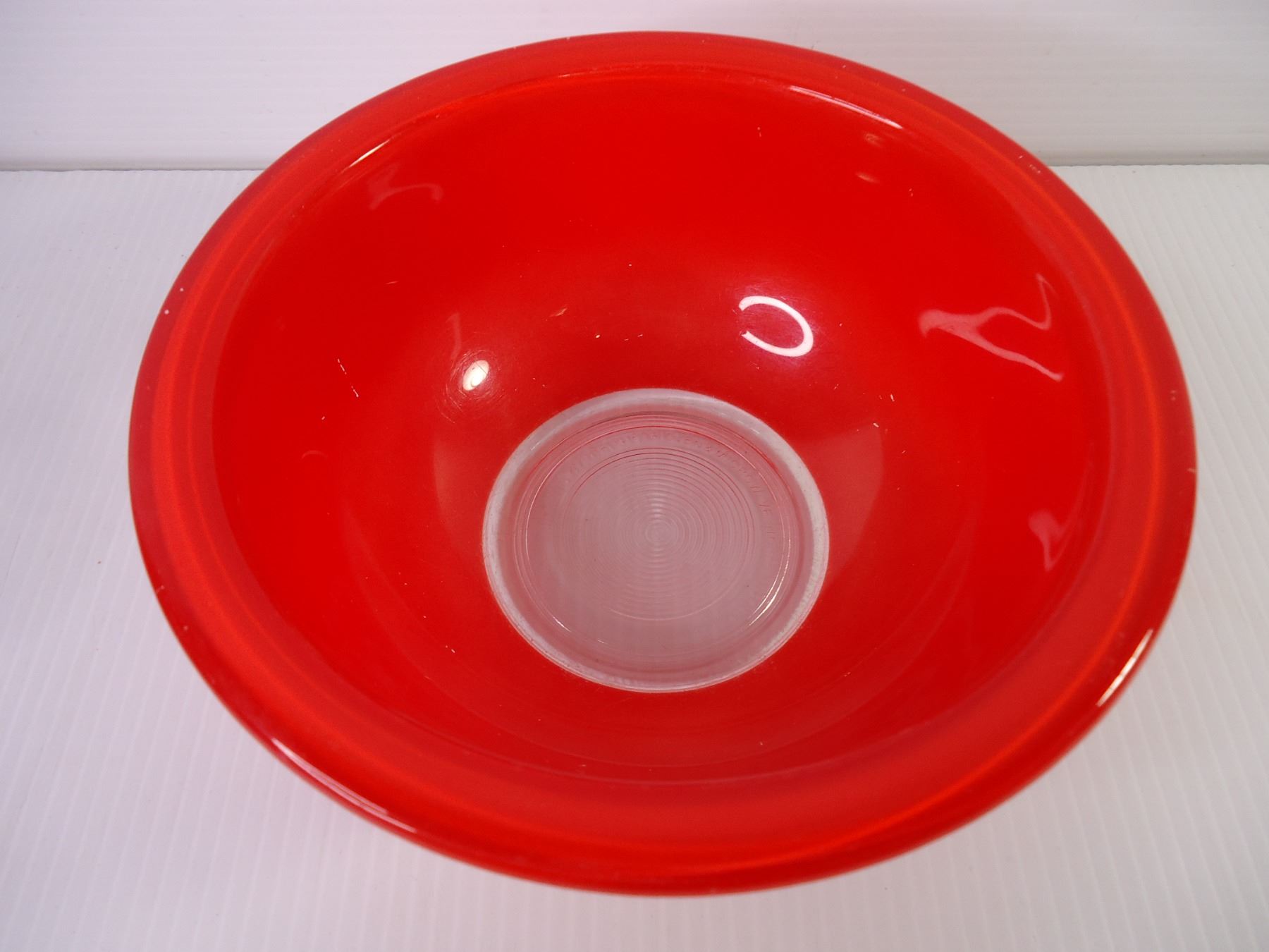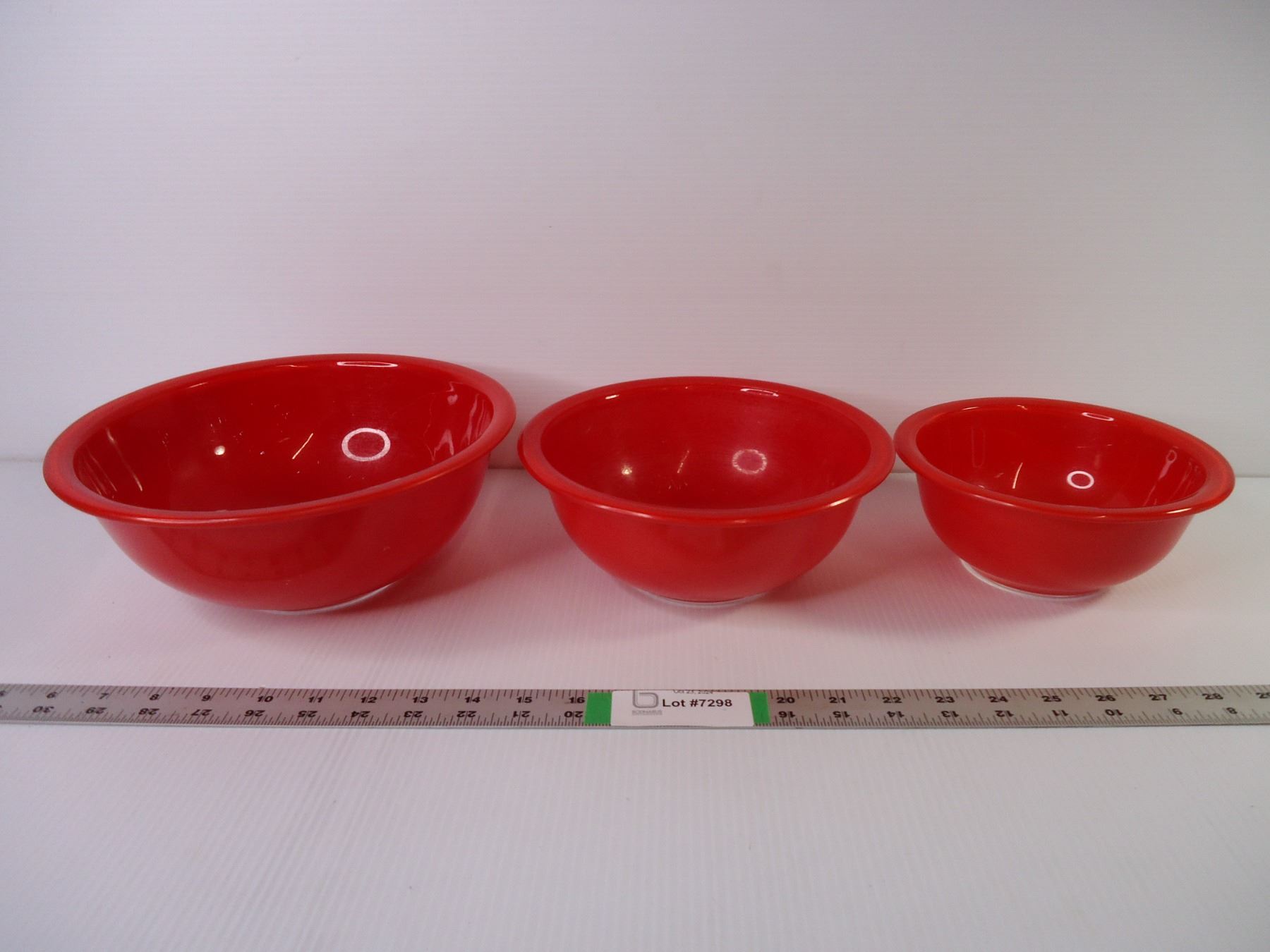 Set of (3) Red Pyrex Clear Bottom Mixing Bowls