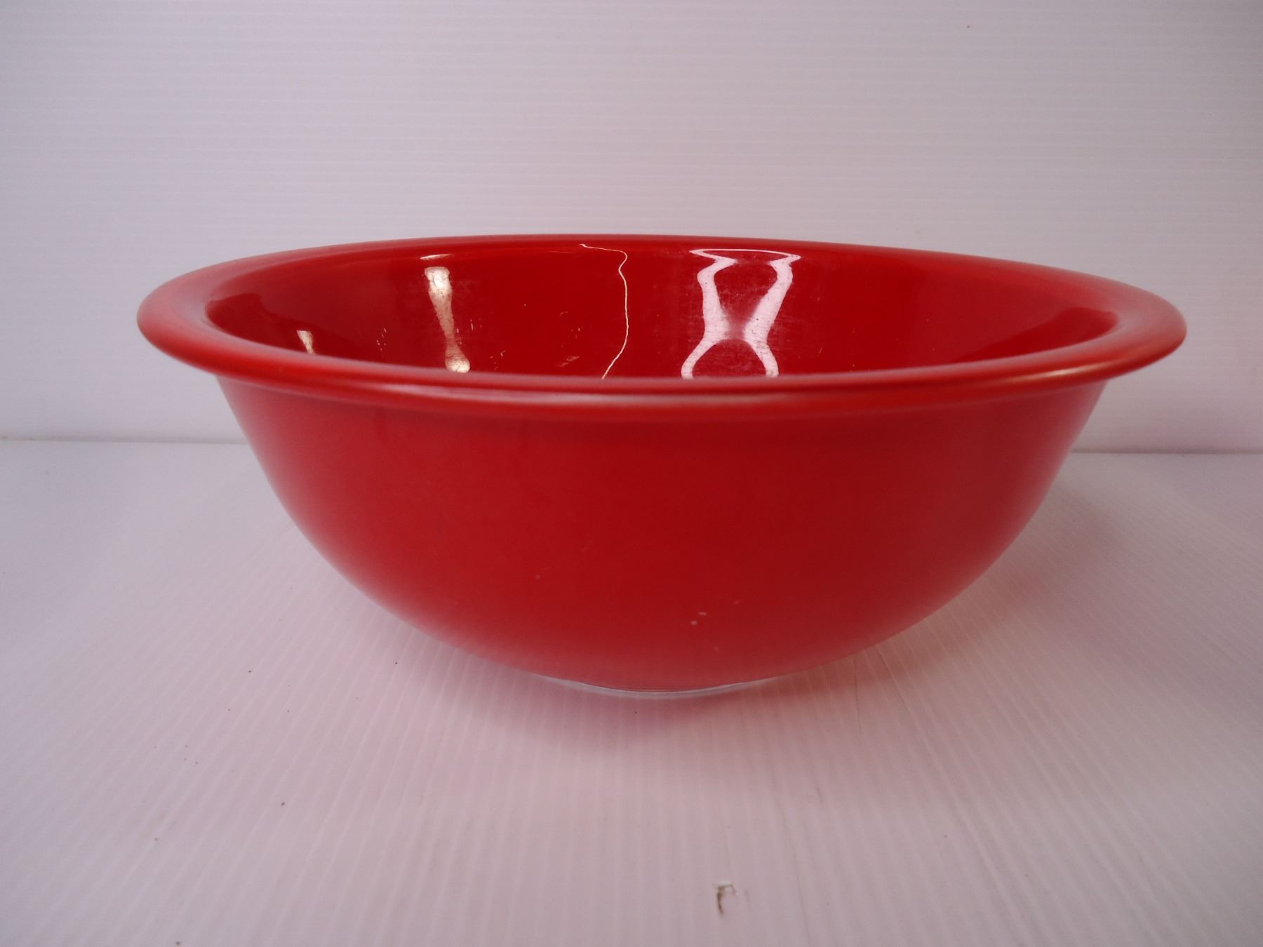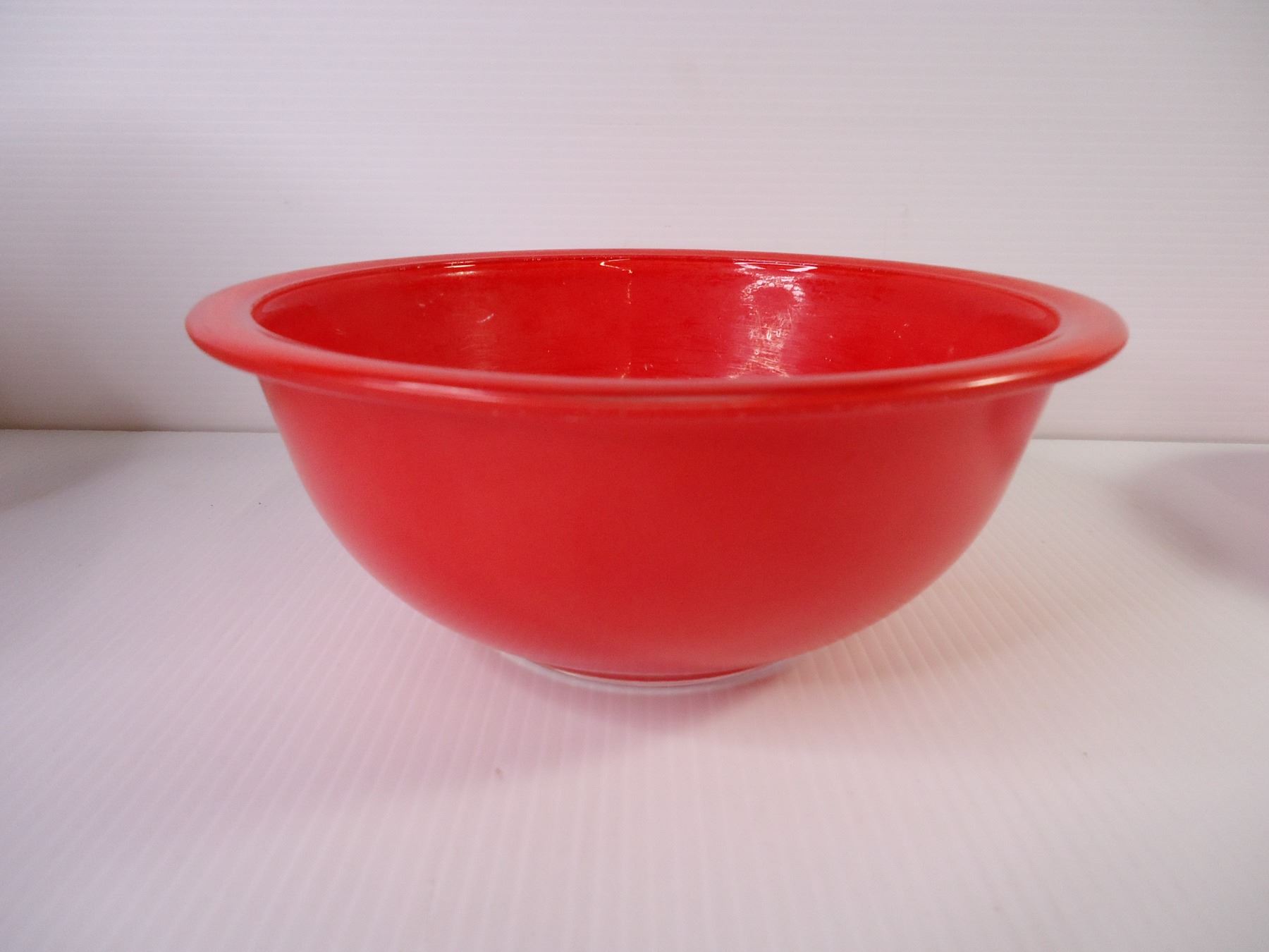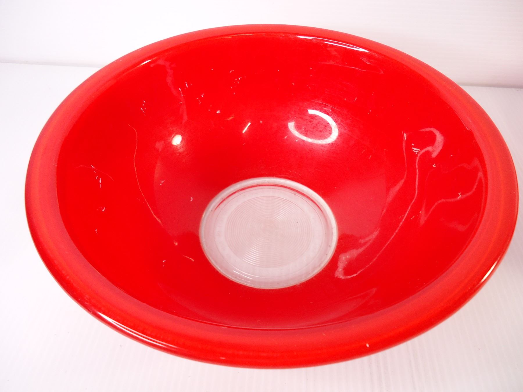 Set of (3) Red Pyrex Clear Bottom Mixing Bowls