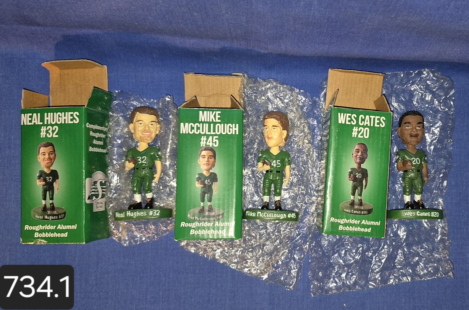 Set of 3 Saskatchewan Roughriders bobbleheads, New in Box