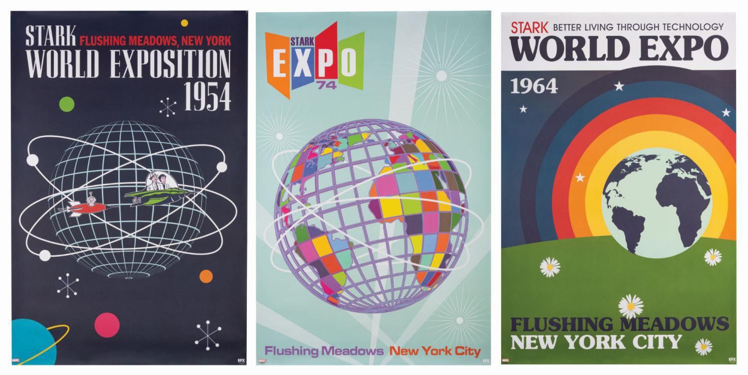 (Marvel, 2016) A collection of (3) poster prints advertising Stark Expo as seen in Marvel's Iron Man 2 film. The fictitious Stark Expo (held in 1954, 1964, and 1974) was where Howard Stark presented the technology of the future, and these high-quality replicas were printed on acid-free paper and manufactured from files and material found in the Marvel Archives. Measuring 48"x22", each poster is in fine condition.