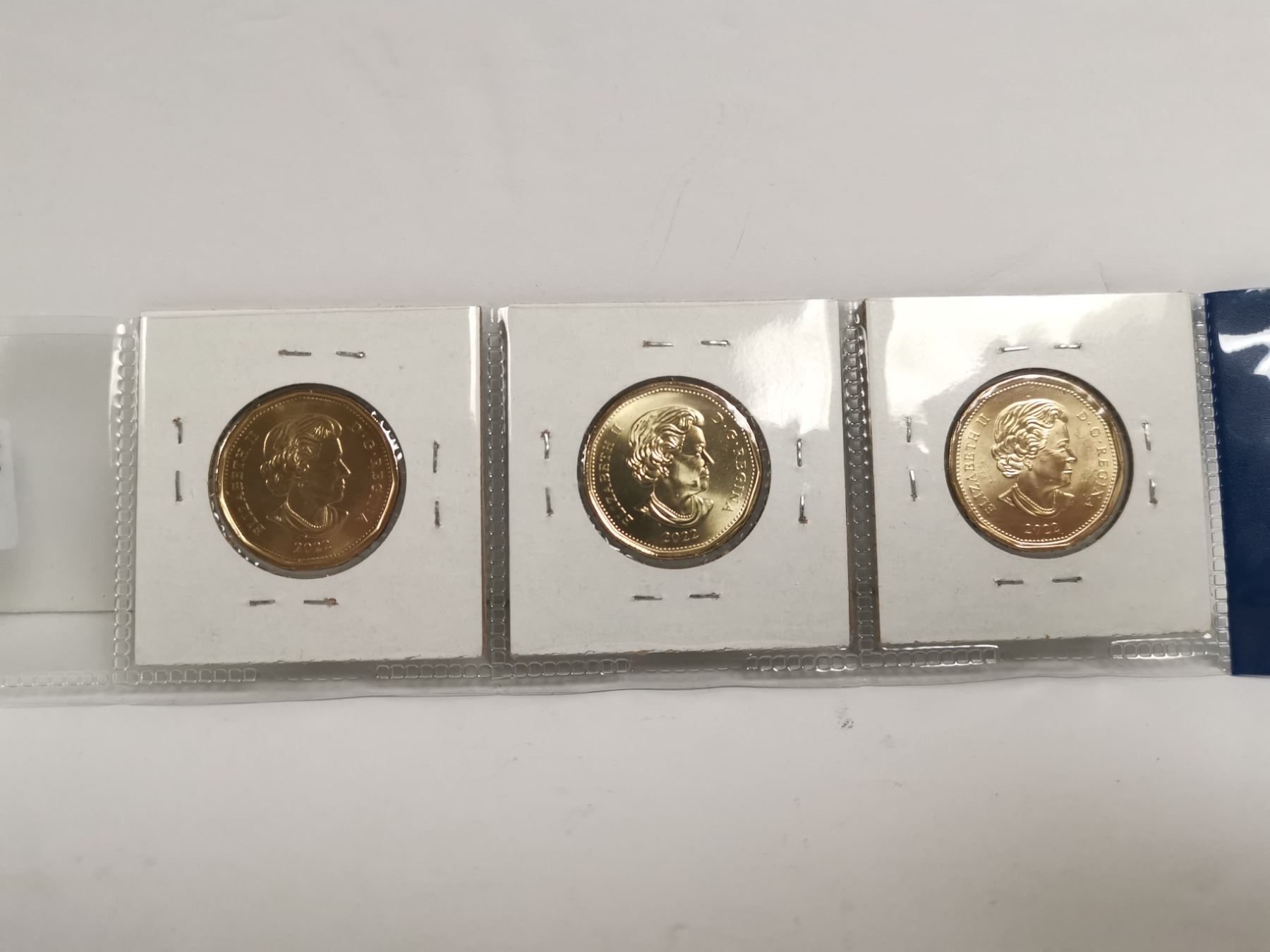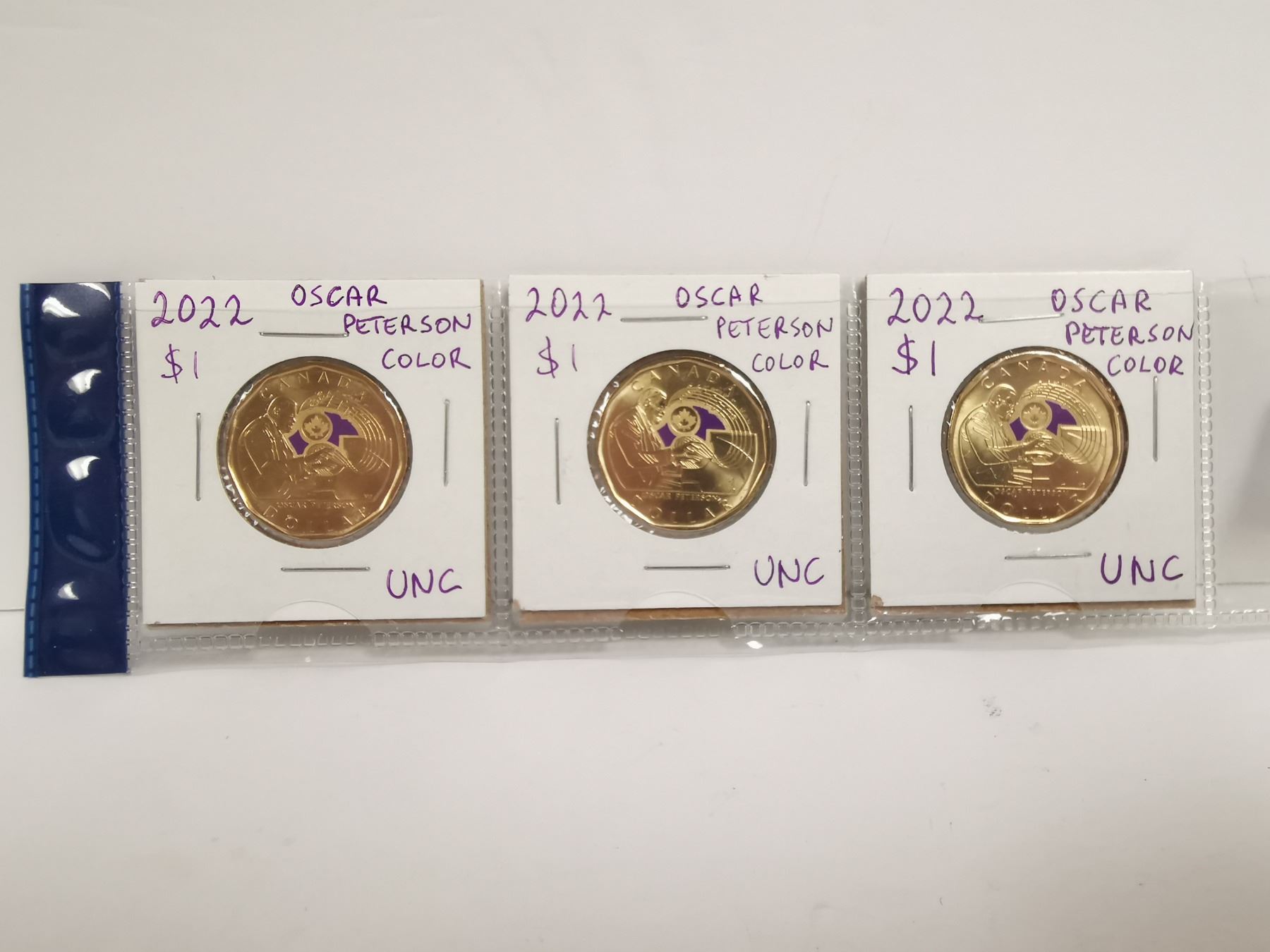 Set of 3, UNC 2022 Oscar Peterson 1 dollar loonies